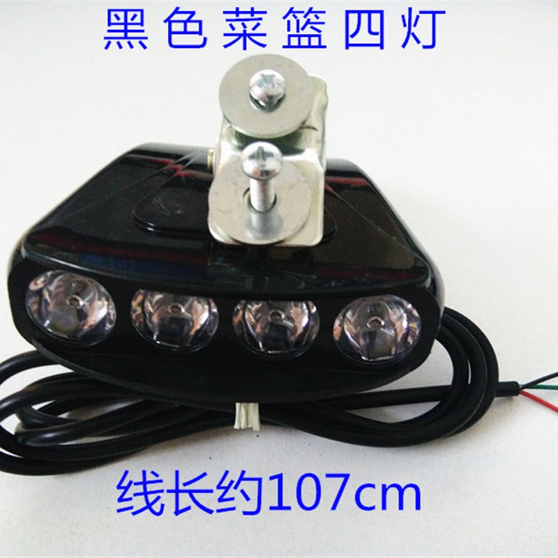 锂电自行车灯车前灯 电动车大灯带 喇叭菜篮灯36伏-60伏通用配件