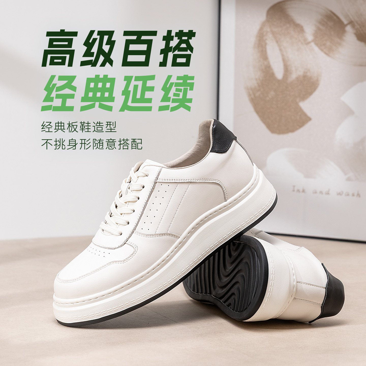 高哥增高小白鞋真皮厚底休闲男鞋子秋季轻便运动鞋男士内增高板鞋