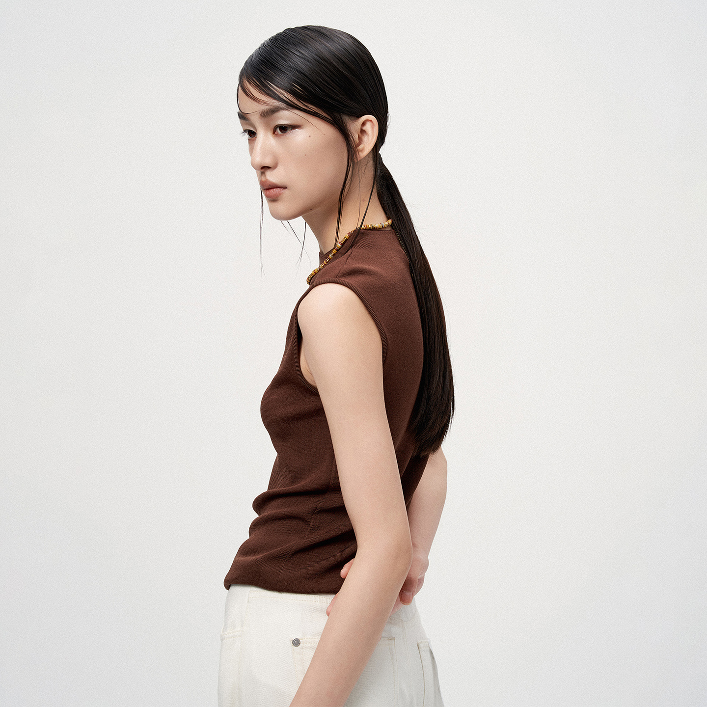 Re-BLUE轻奢优雅女装极简舒适质感ROW风无袖针织小上衣