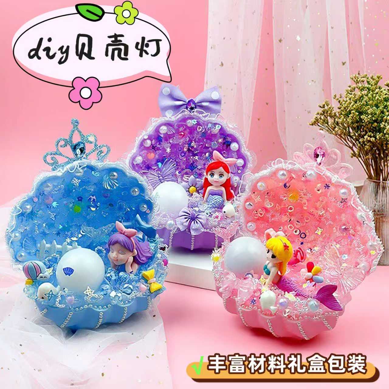 发光贝壳儿童女孩手工diy制作美人鱼小夜灯奶油胶玩具礼物材料包
