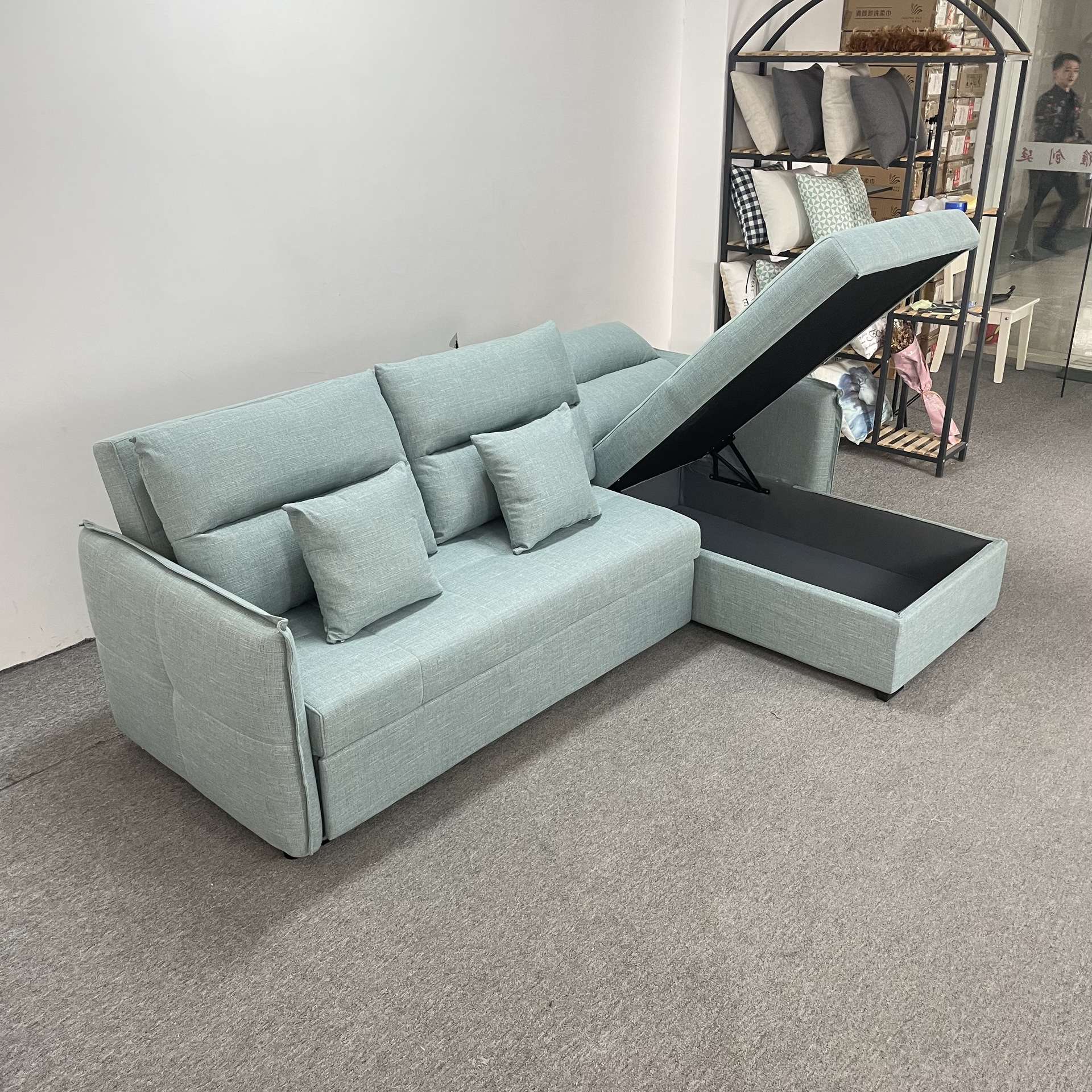 现代简约沙发床清新绿布艺组合可折叠客厅卧室多功能储物沙发梳化