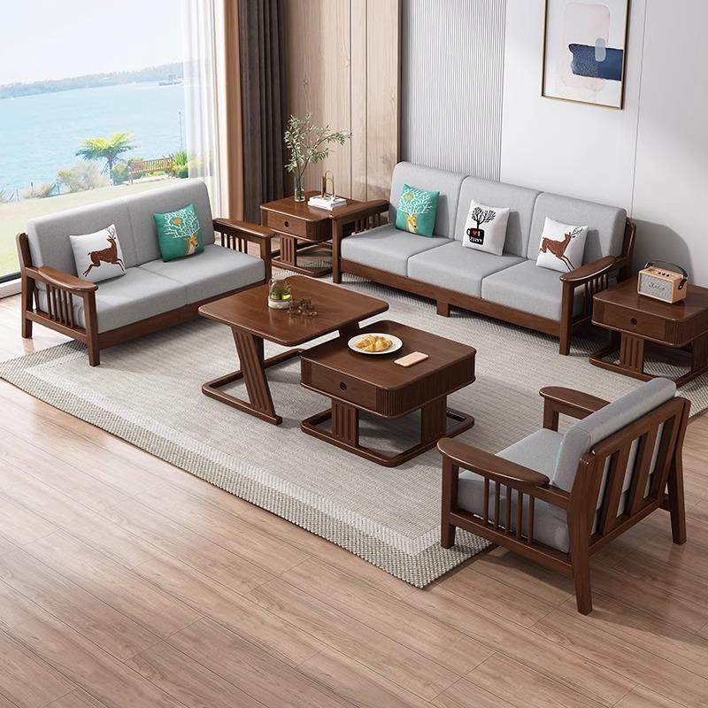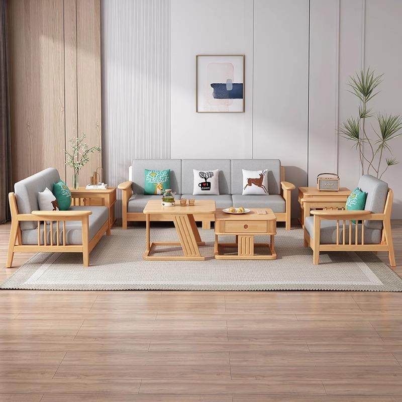 北欧实木组合沙发简约现代布艺贵妃转角沙发小户型三人位客厅家具