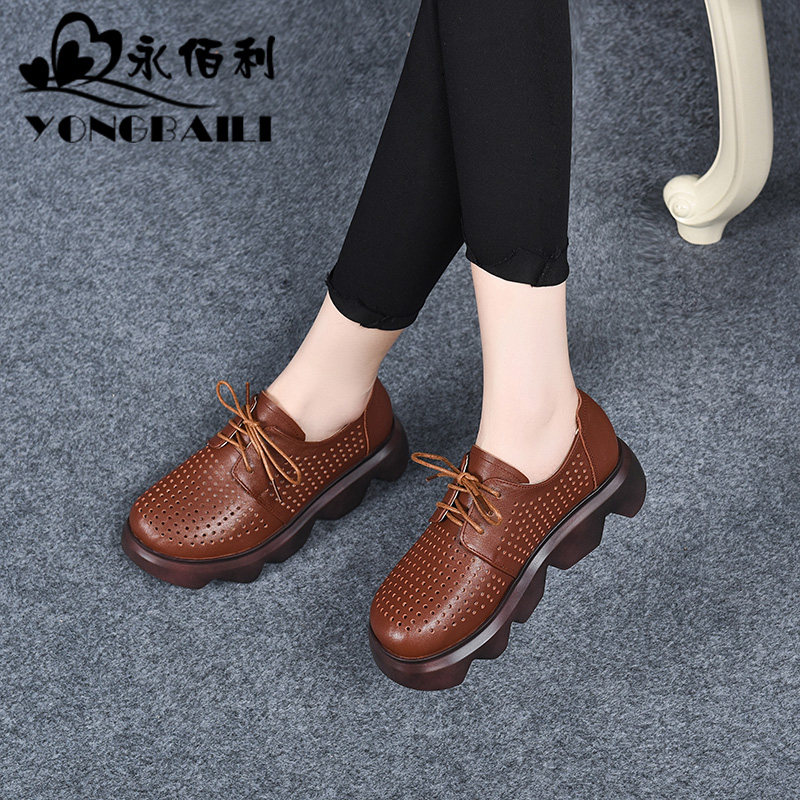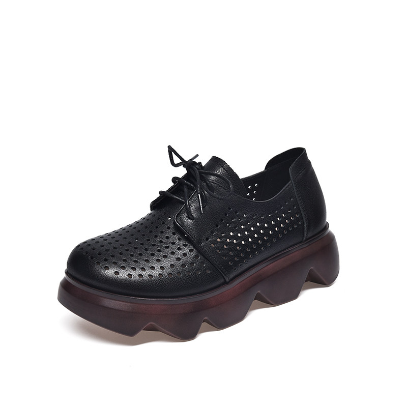 真皮厚底高跟单鞋女2025春夏新款松糕鞋厚底休闲罗马镂空复古女鞋