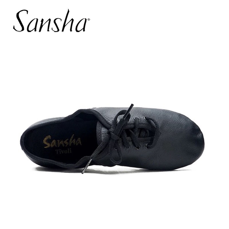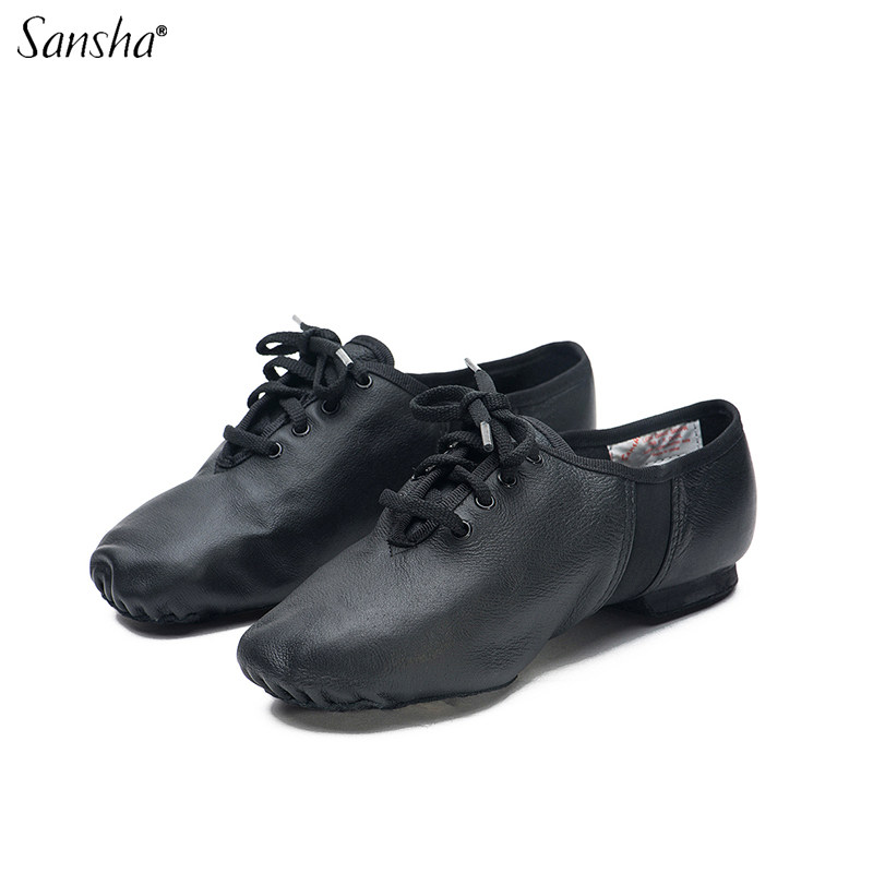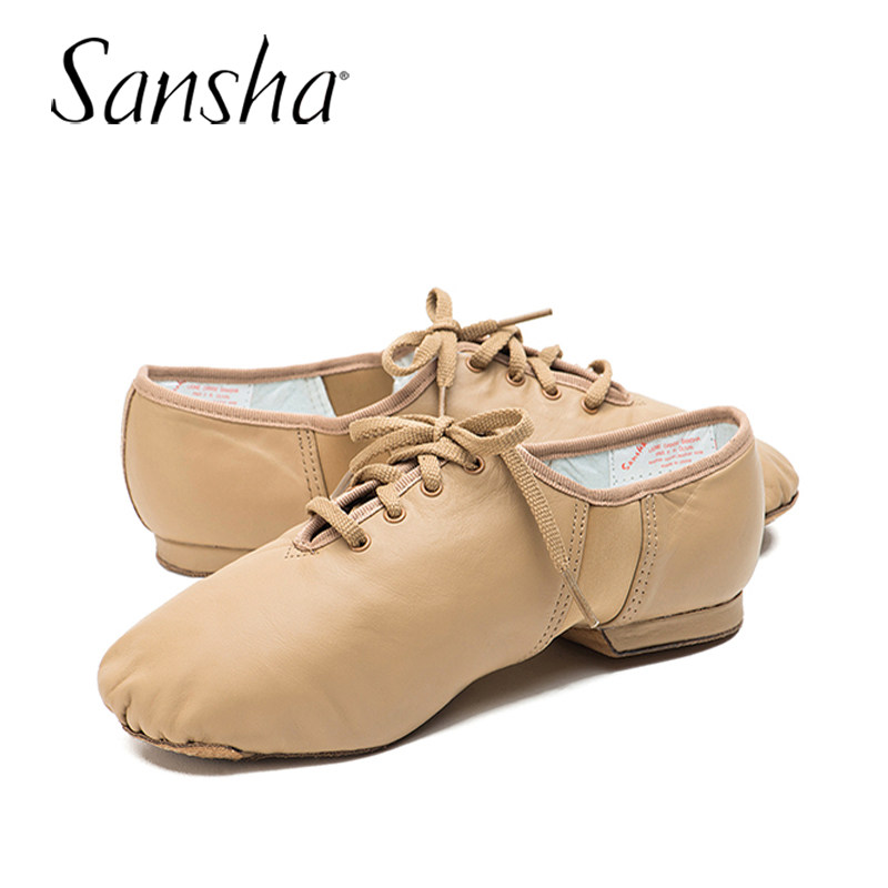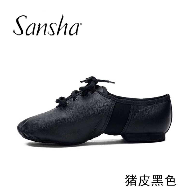 Sansha三沙现代爵士舞鞋男女考级练功舞蹈鞋低帮系带真皮低跟软鞋