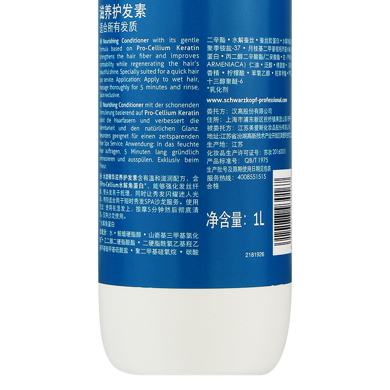 正品施华蔻水漾精华滋养护发素1000ml滋润柔顺补水修护损伤护发乳