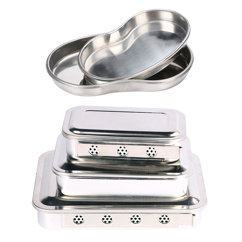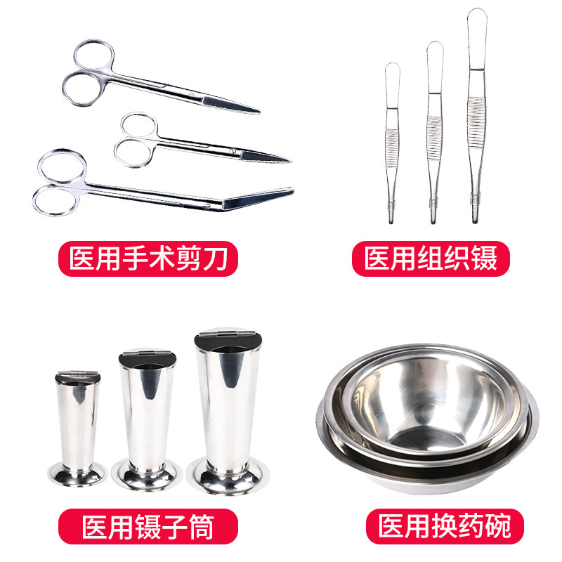 不锈钢器械镊子筒消毒盒搪瓷白钢小方盘弯盘换药碗油膏缸棉花筒罐