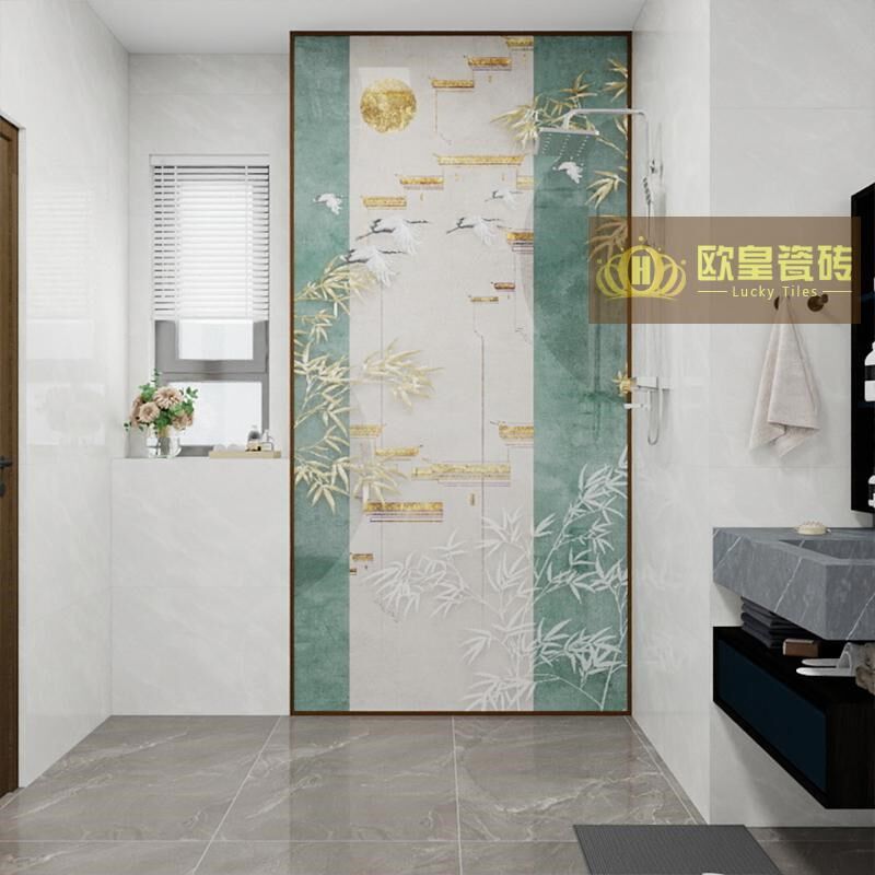 卫生间瓷砖背景墙竹子新中式典雅浴室淋浴墙花片岩板瓷砖玄关花砖