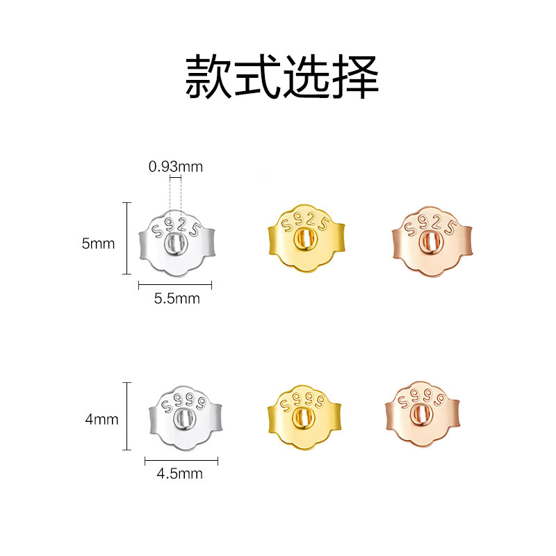 999足银蝴蝶结耳堵18K金玫瑰金耳塞耳帽背后托耳钉防掉配件纯银
