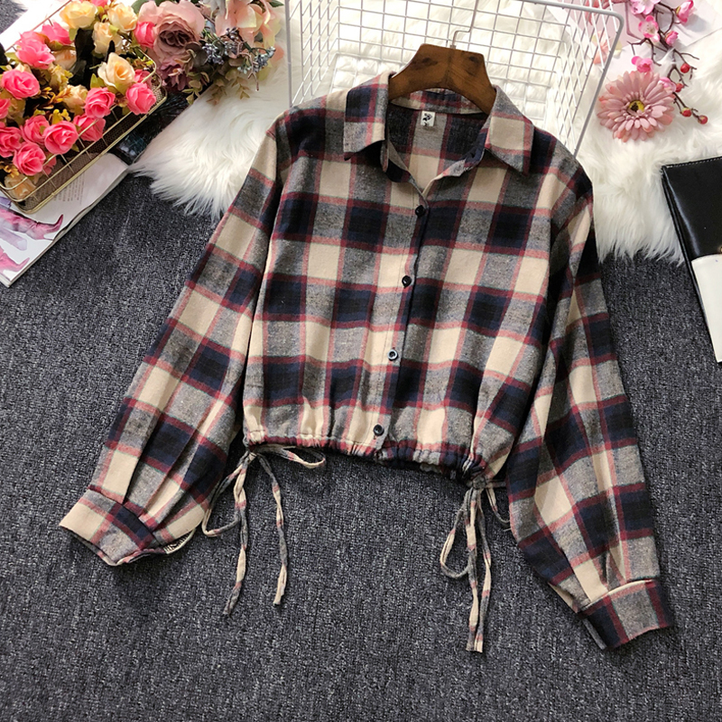 长袖上衣2022春季新款韩版宽松百搭薄款小香风格子短外套女ins潮