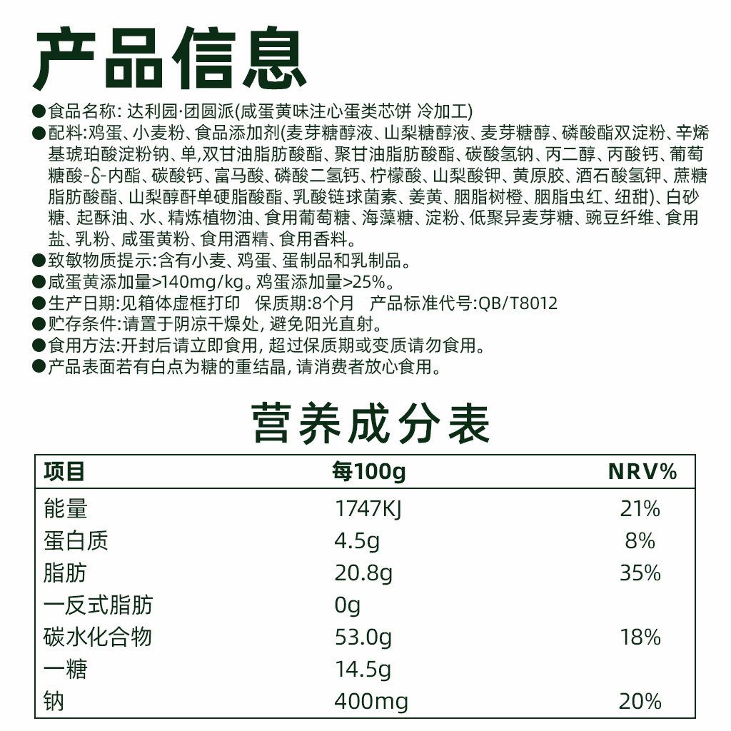 臻选 达利园糕点清咸蛋黄团圆派休闲零食年货礼盒早餐代餐825g