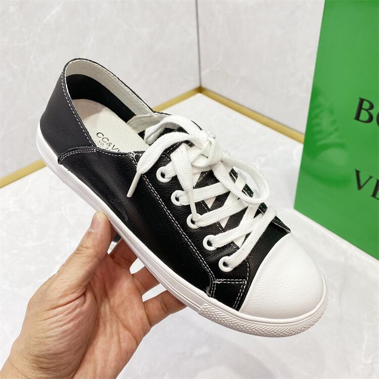 CCVV韩版头层牛皮百搭小皮鞋女2023春季新款平底舒适软底休闲板鞋
