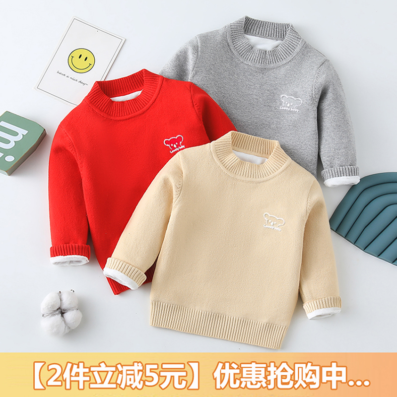 儿童毛衣秋冬男童女童打底衫加绒加厚中小童毛线衣宝宝棉线针织衫