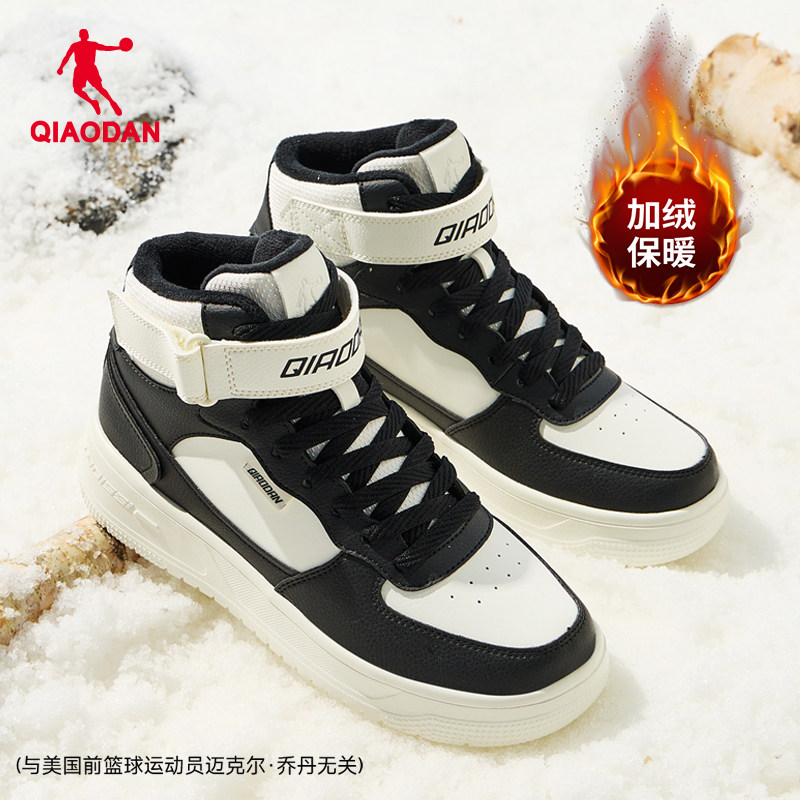 乔丹2025年冬季新品棉鞋女款运动板鞋加绒保暖黑白百搭休闲鞋女子