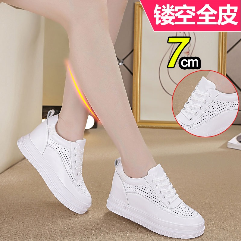 香港小白鞋2025新款内增高透气单鞋松糕厚底真皮休闲学生百搭板鞋