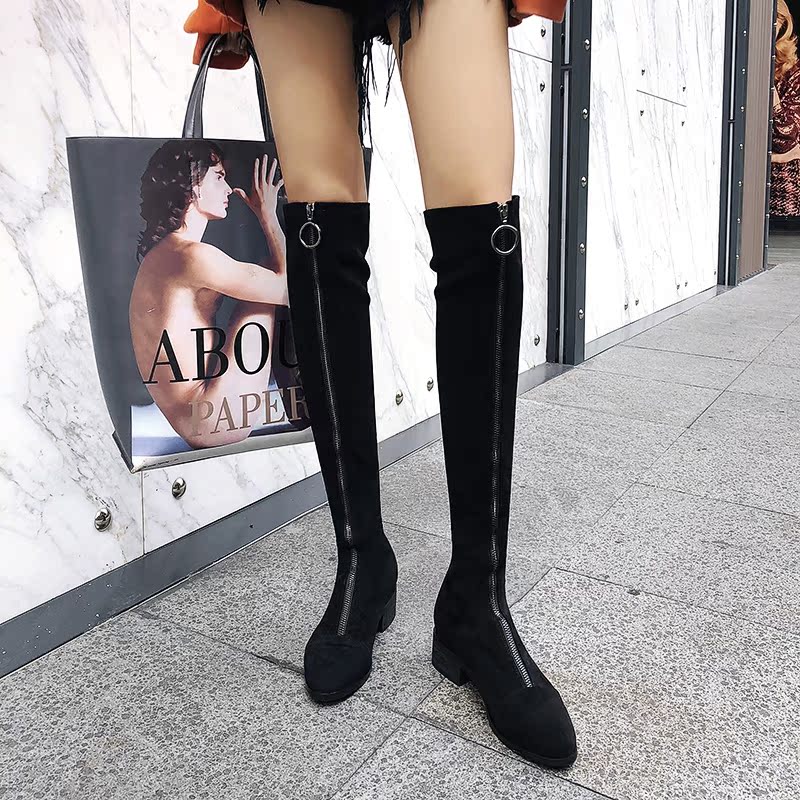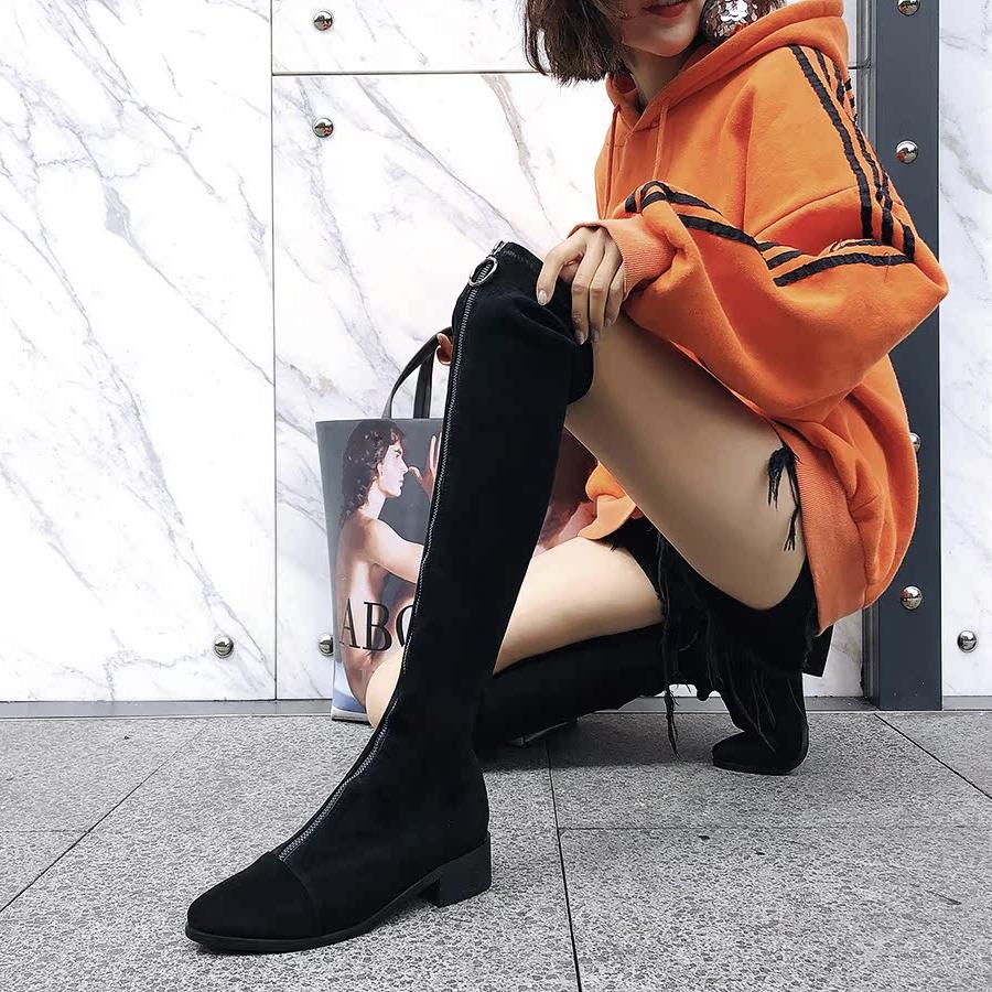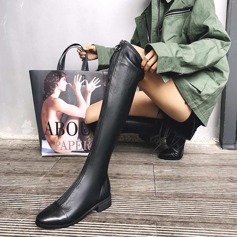 真皮女靴清仓 过膝长靴女英伦风显瘦长筒尖头内增高平底高筒靴子