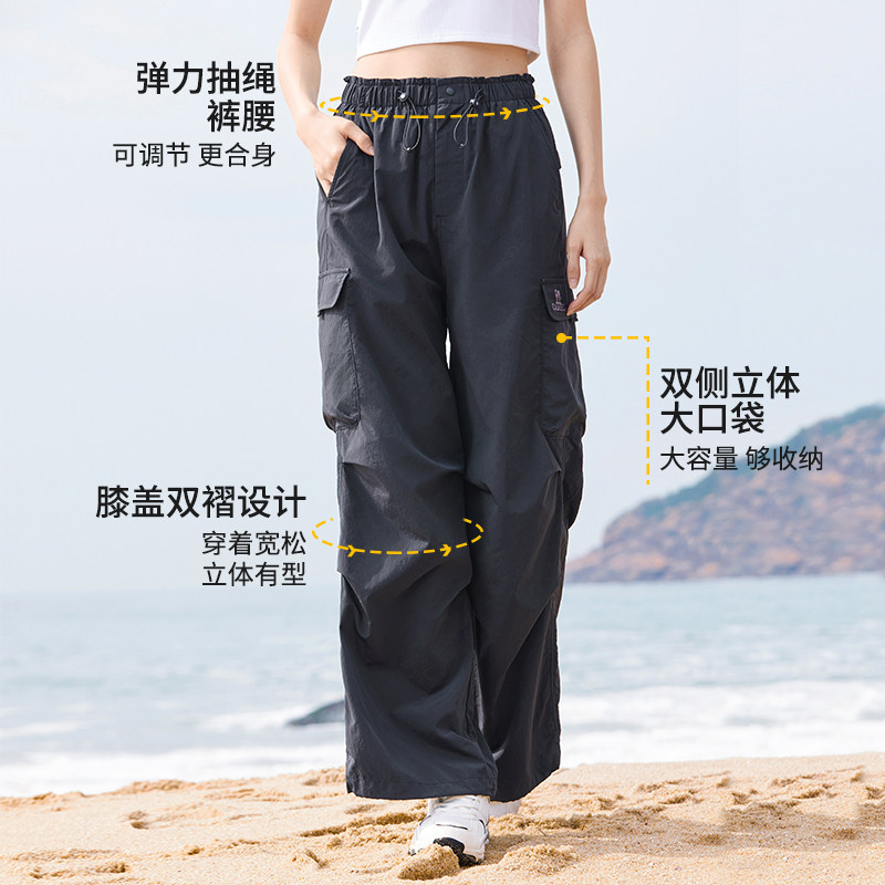 骆驼户外休闲山海伞兵裤2025夏季新款透气防晒阔腿休闲百搭工装长