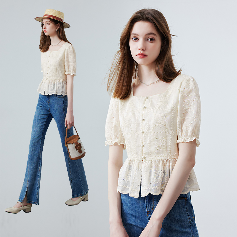 KBNE衬衫女法式上衣爆款蕾丝衬衣2025年夏装新款气质独特漂亮小衫