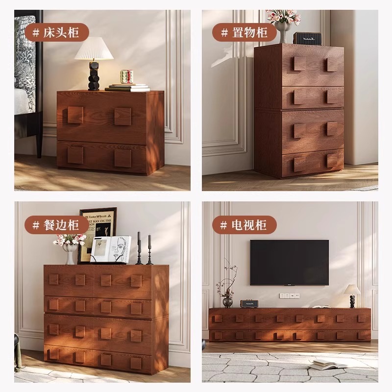 复古风中古全实木电视柜现代简约客厅卡门柜卧室储物组合模块收纳