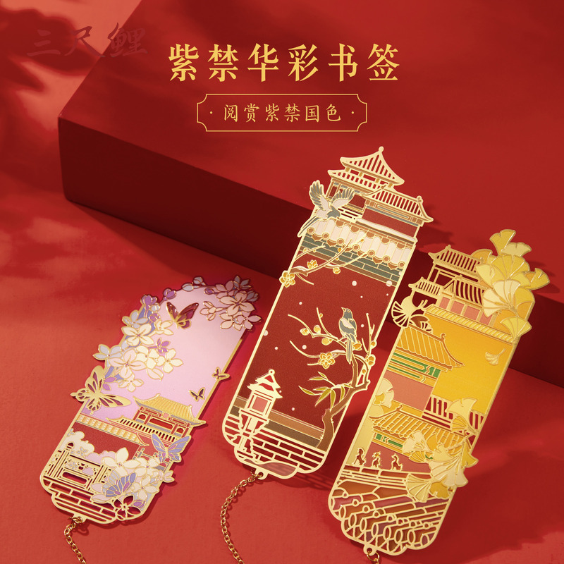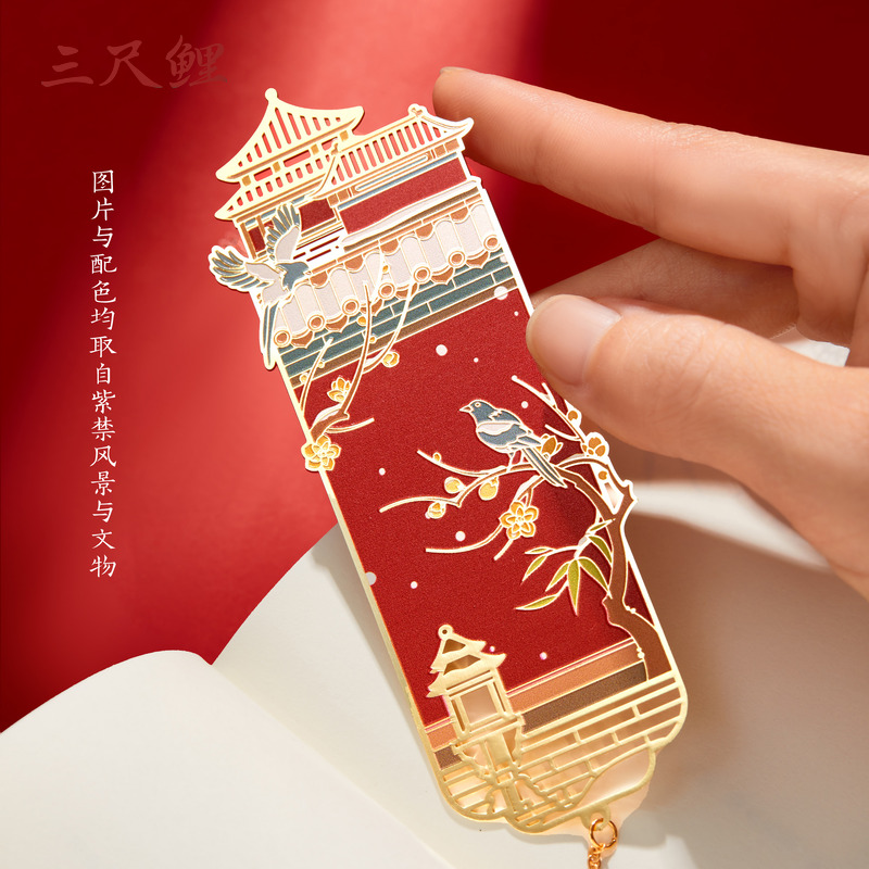 【1件8.5折】三尺鲤国潮文具紫禁华彩书签博物文创书签高颜值加厚金属书签吊坠建筑古典中国风文创中秋节礼物