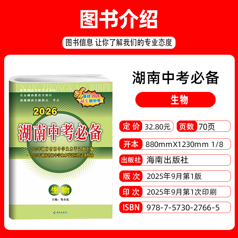 2026版湖南中考必备生物地理2本新课标历年中考试题汇编初中毕业学业考试试卷2025年中考生地会考复习真题真卷模拟题典型题教辅