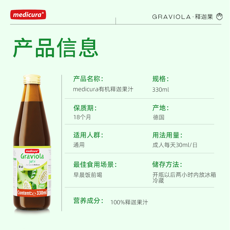 medicura德国进口有机释迦果汁番荔枝汁富含维生素C内服美白饮