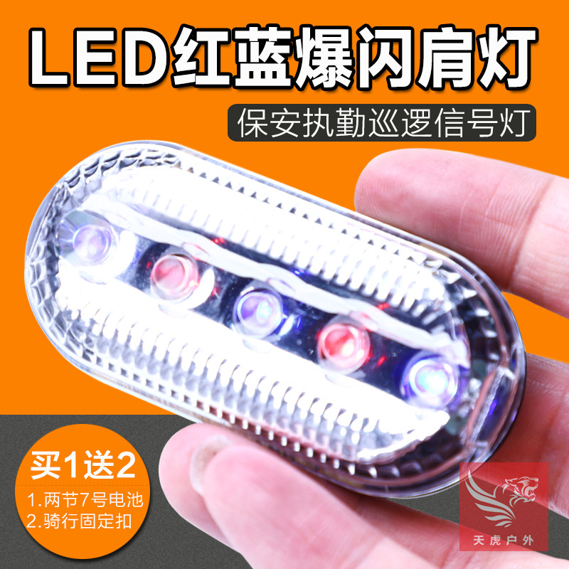 LED肩灯红蓝爆闪警示灯 夜跑装备保安夜间巡逻闪光信号灯电池款