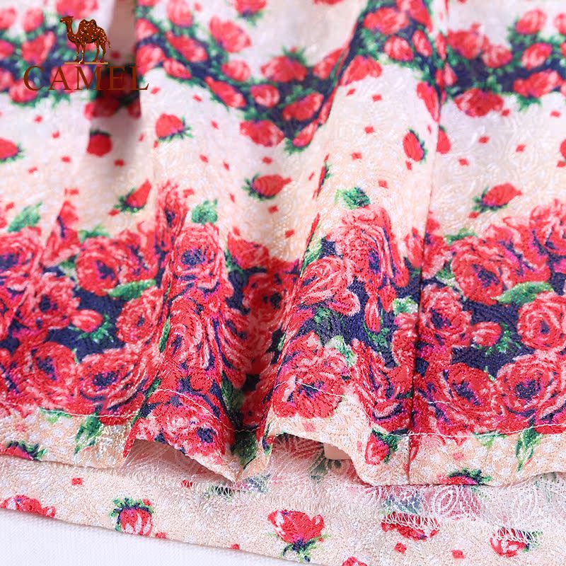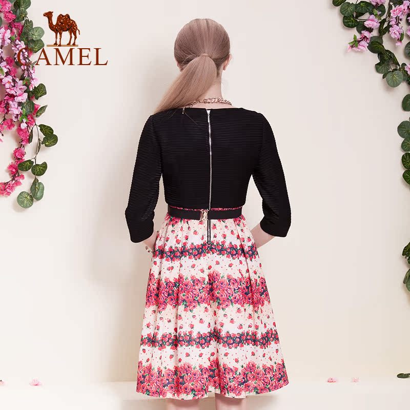 【非卖品】骆驼camel女装七分袖打底裙印花中长款碎花连衣裙