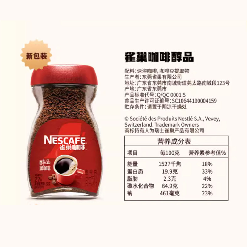 雀巢咖啡醇品美式速溶即溶纯黑咖啡办公提神健身