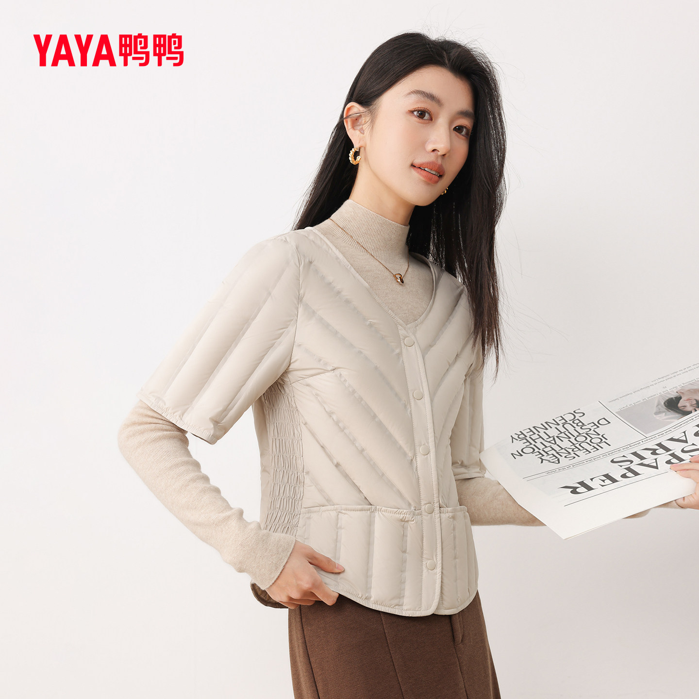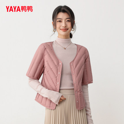 鸭鸭轻薄羽绒马甲2025年秋冬新款V领短款小个子简约百搭半袖外套