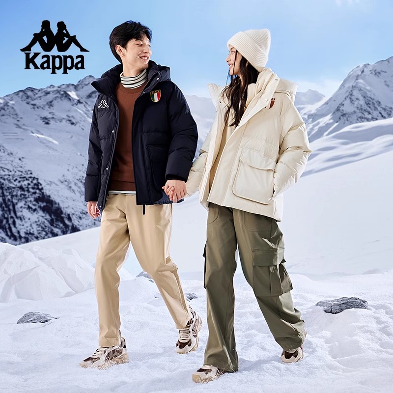 Kappa卡帕背靠背新款冬季运动羽绒服男户外连帽外套女保暖防寒服