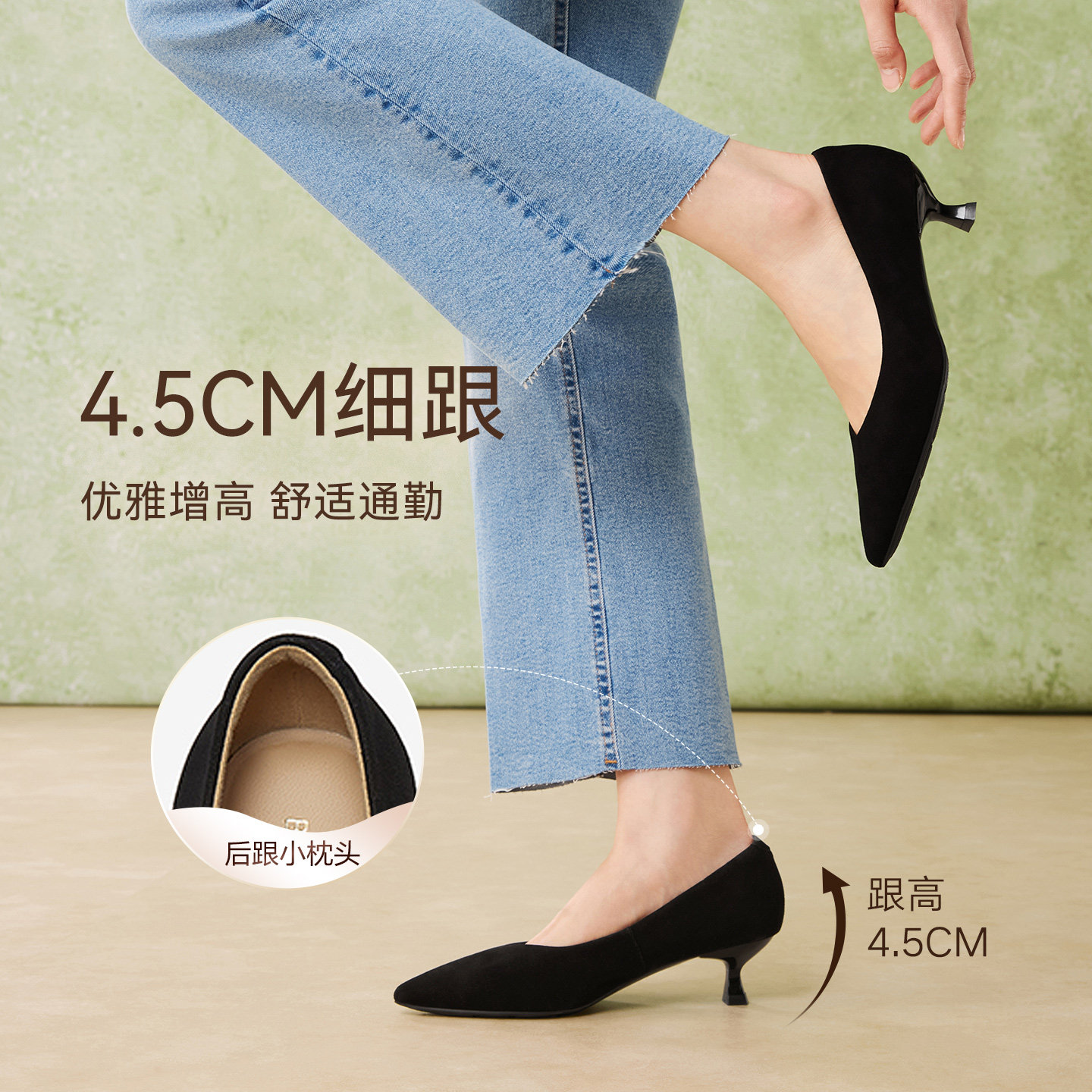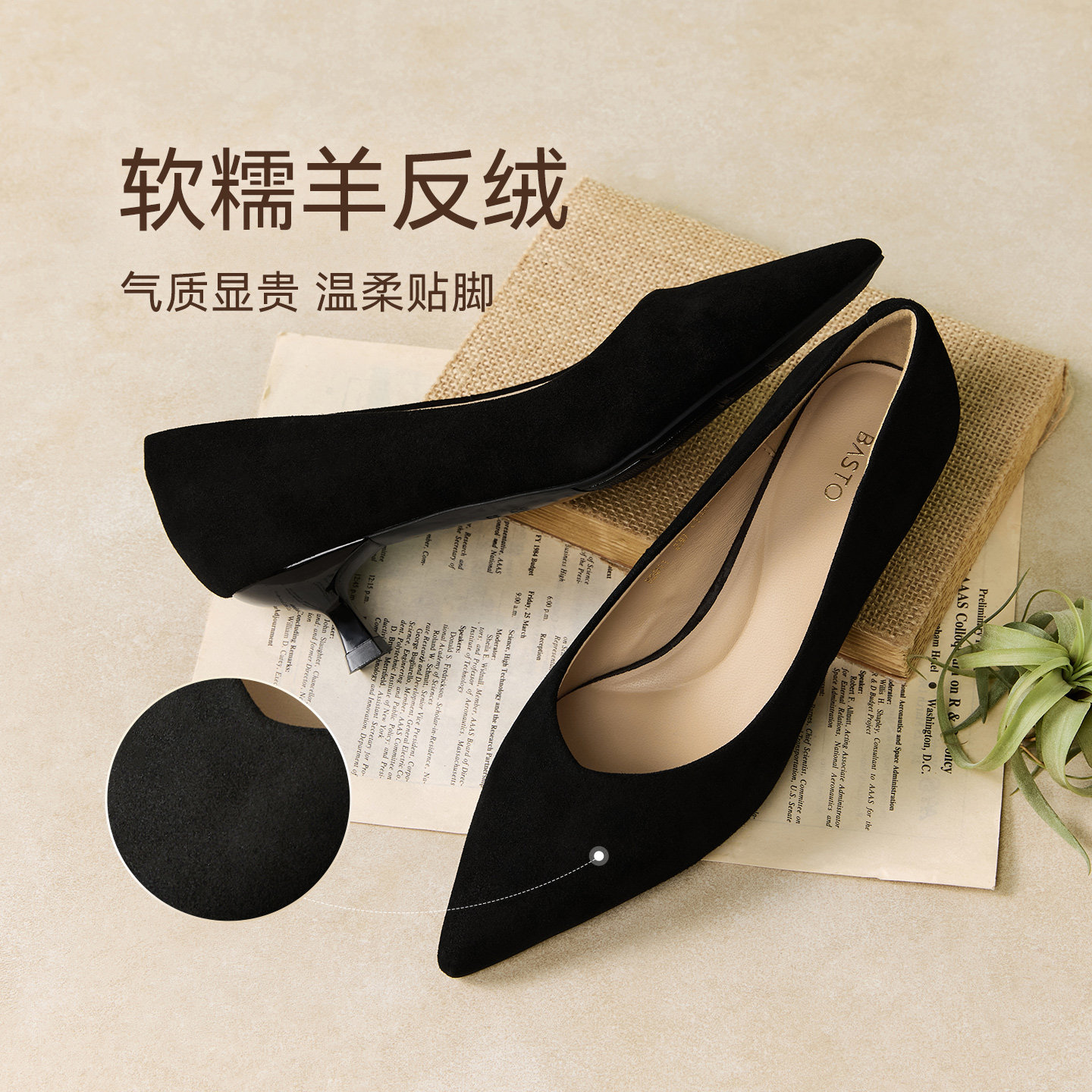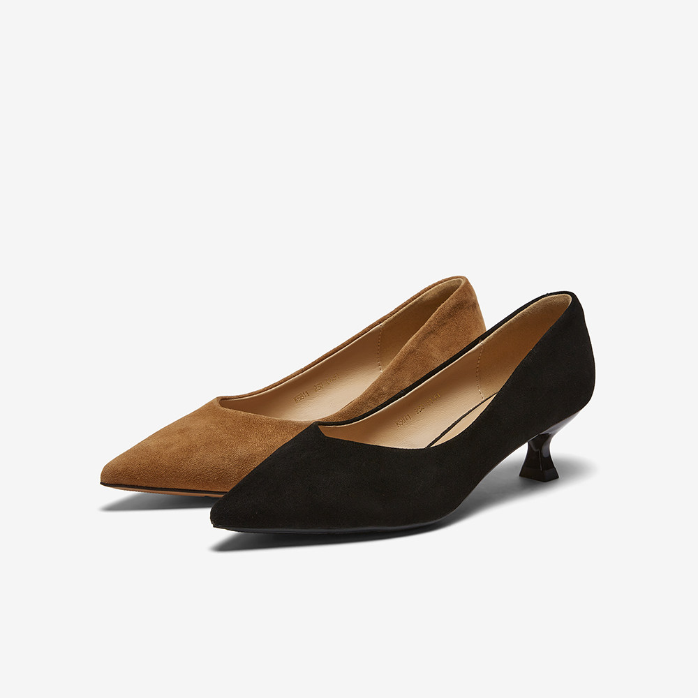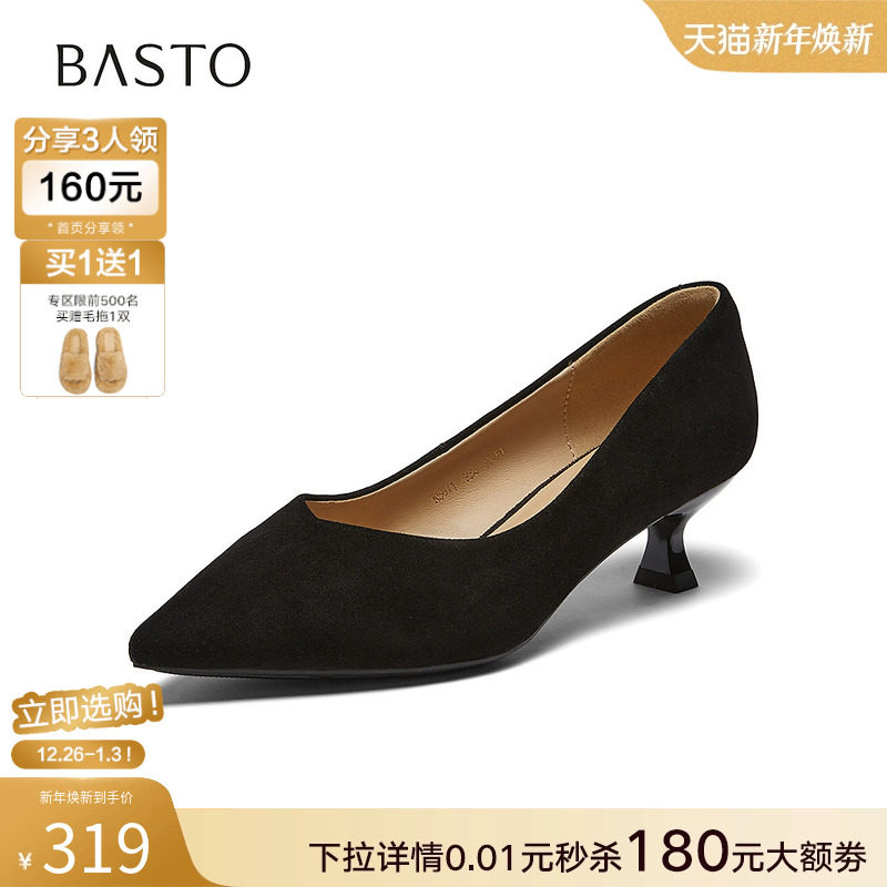百思图2026春季新款羊皮绒面细跟高跟鞋尖头女浅口单鞋K5811AQ6