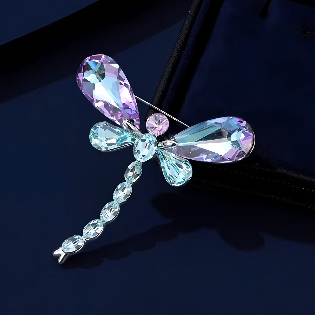 轻奢水晶蜻蜓胸针高档女气质彩色昆虫胸花小众设计感别针西装