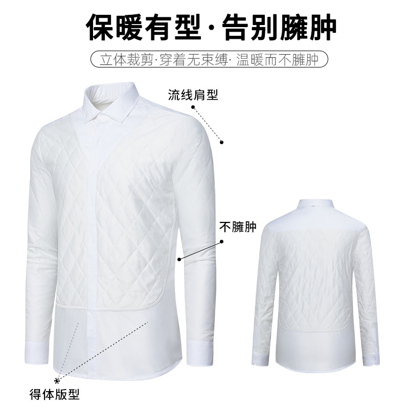 罗蒙纯棉羊毛内胆加绒加厚保暖衬衫男士长袖冬季商务正装白色衬衣