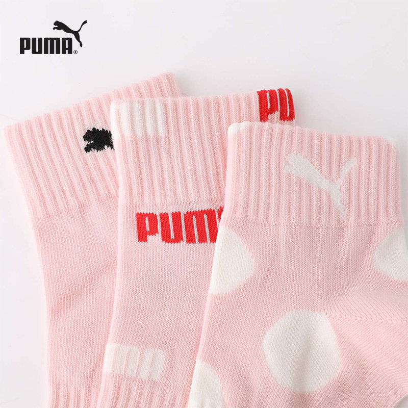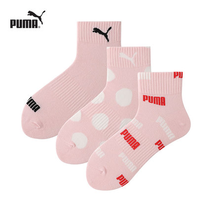 PUMA彪马袜子女士新款定制时尚潮流粉色透气吸汗百搭中筒棉袜3双