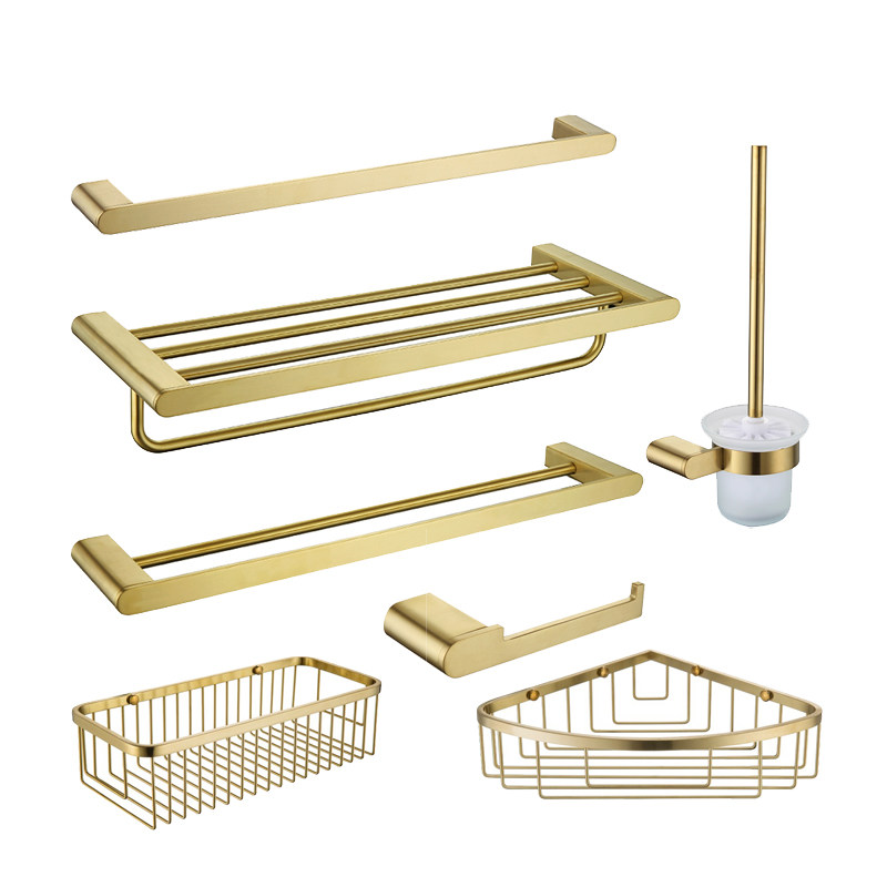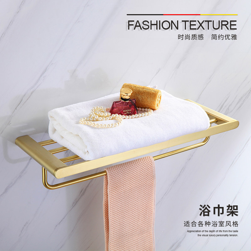 德国拉丝金色毛巾架304不锈钢卫生间浴巾架浴室五金挂件套装轻奢