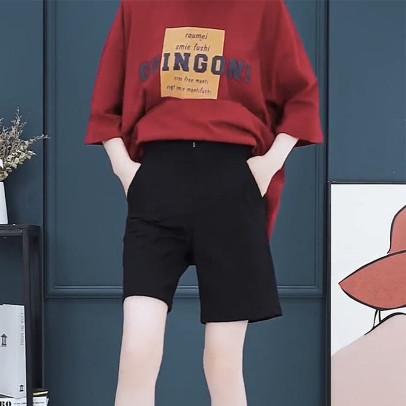 大码2025夏季新款松紧腰黑色五分休闲短裤子女高腰显瘦弹力直筒裤