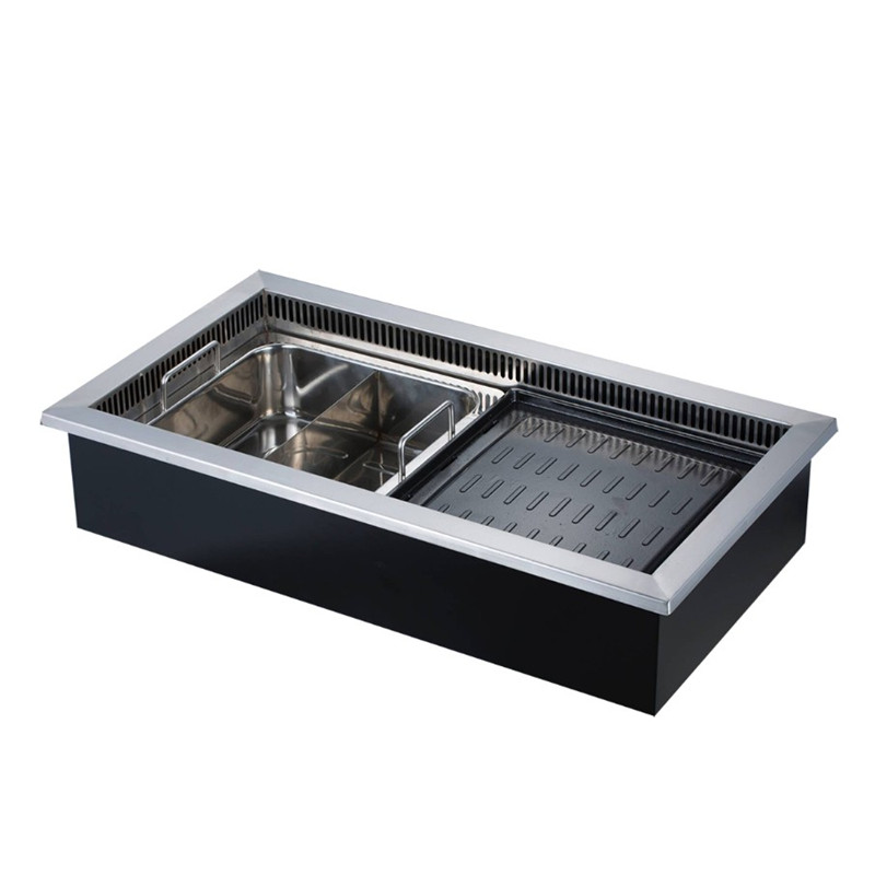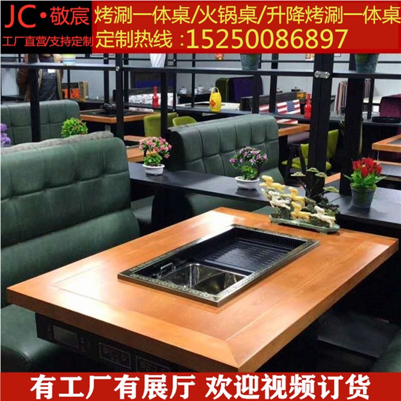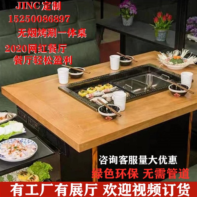 无烟净化烤涮一体桌商用大理石实木自助餐厅韩式火锅烧烤桌椅卡座