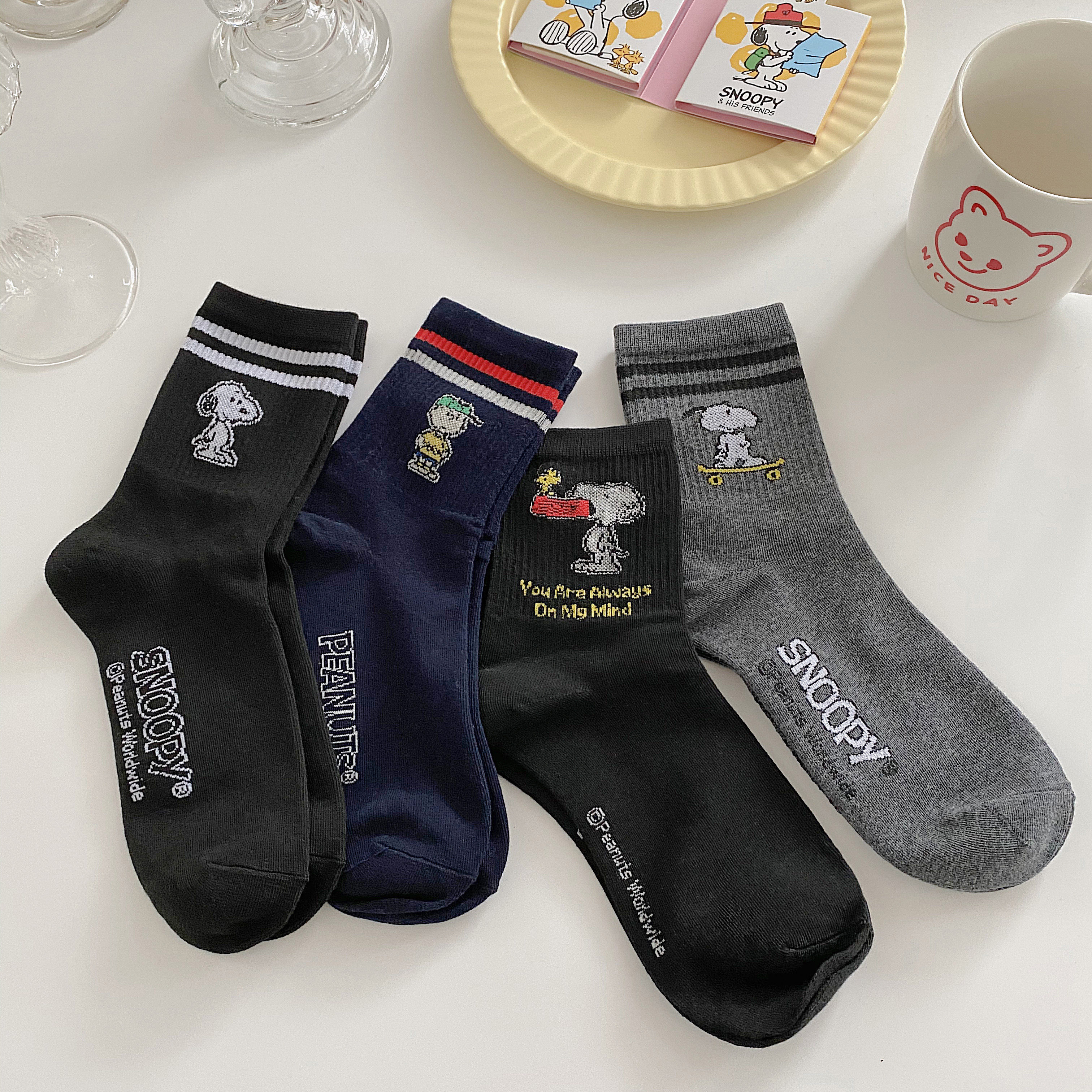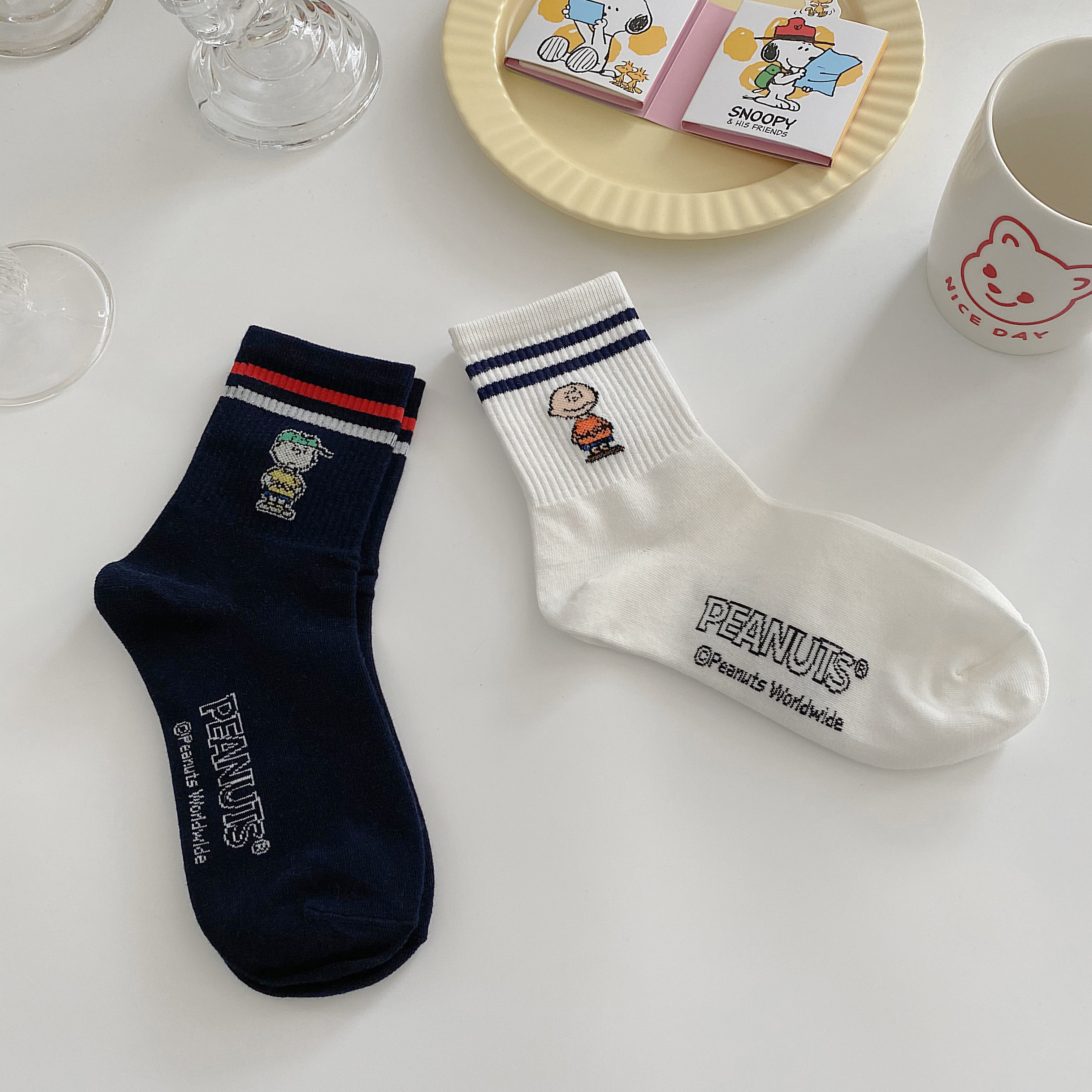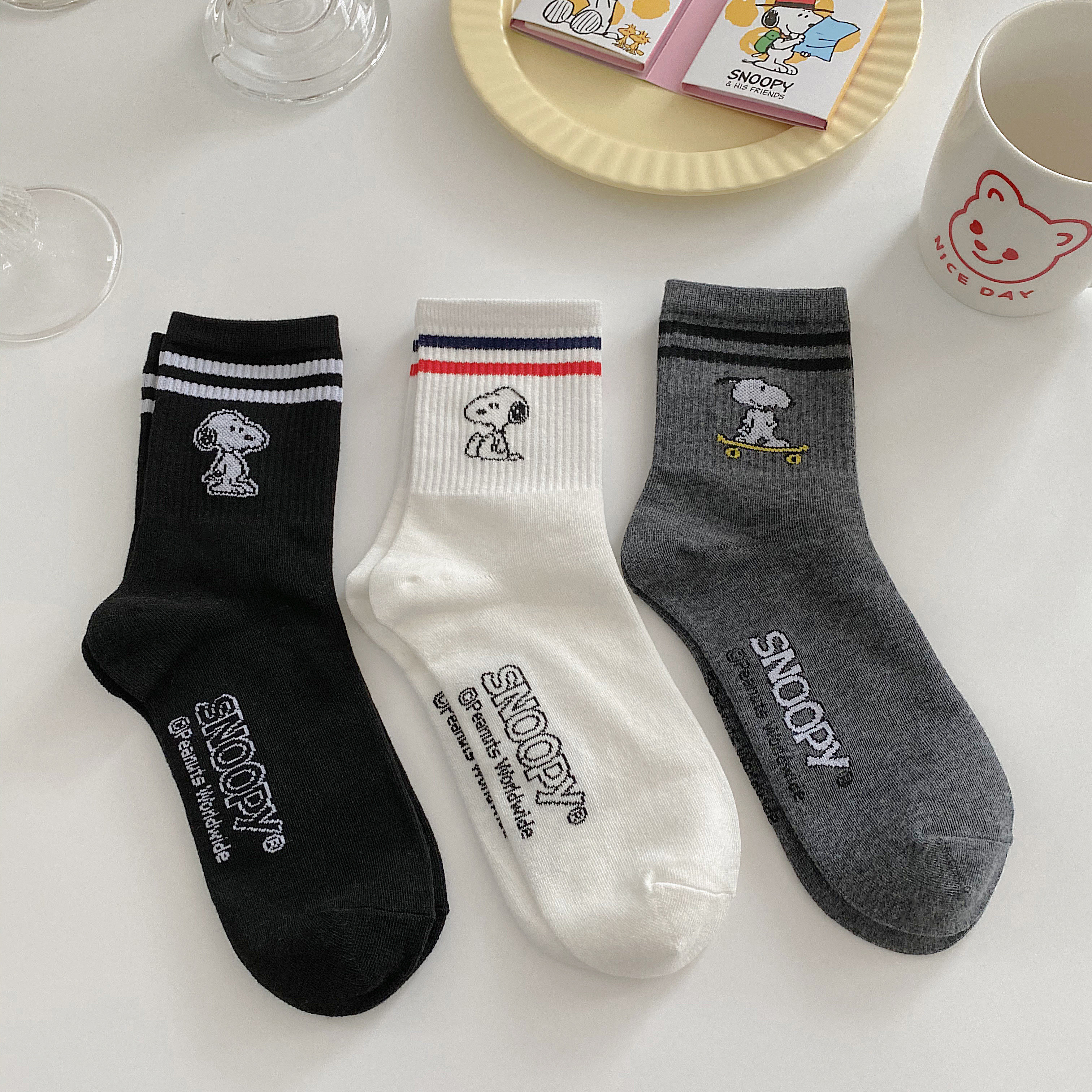 韩国ins潮史努比袜子女中筒袜可爱日系卡通少女心学院风中长棉袜
