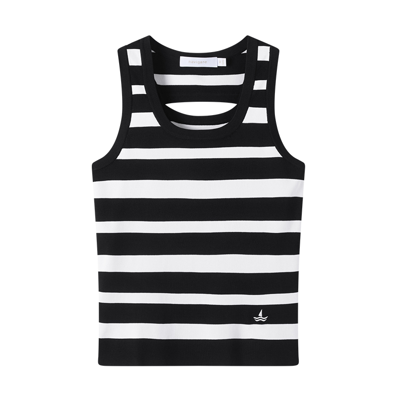 Navigare意大利小帆船修身瑜伽吊带背心女士黑色休闲针织衫