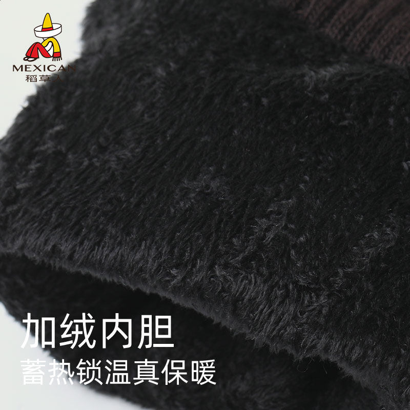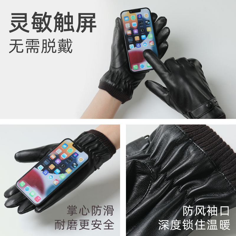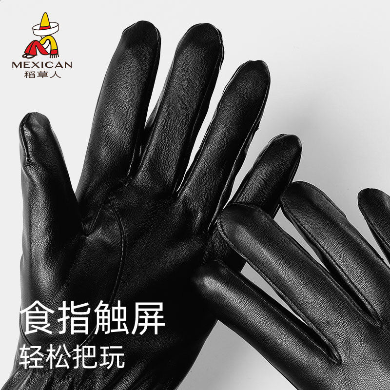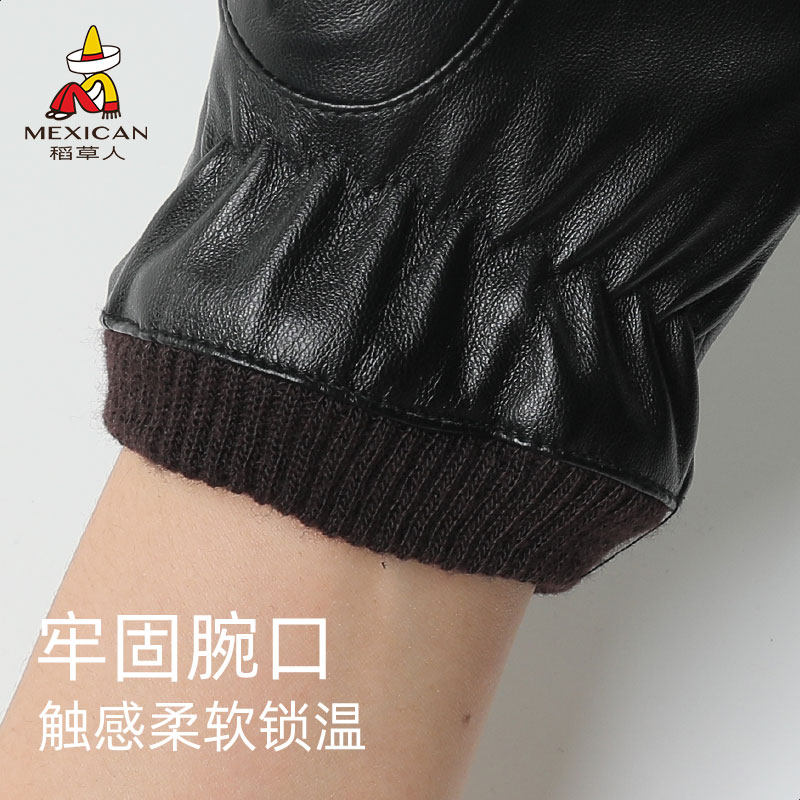 稻草人时尚潮流女防风防水骑行手套秋冬防寒保暖舒适毛绒皮质手套