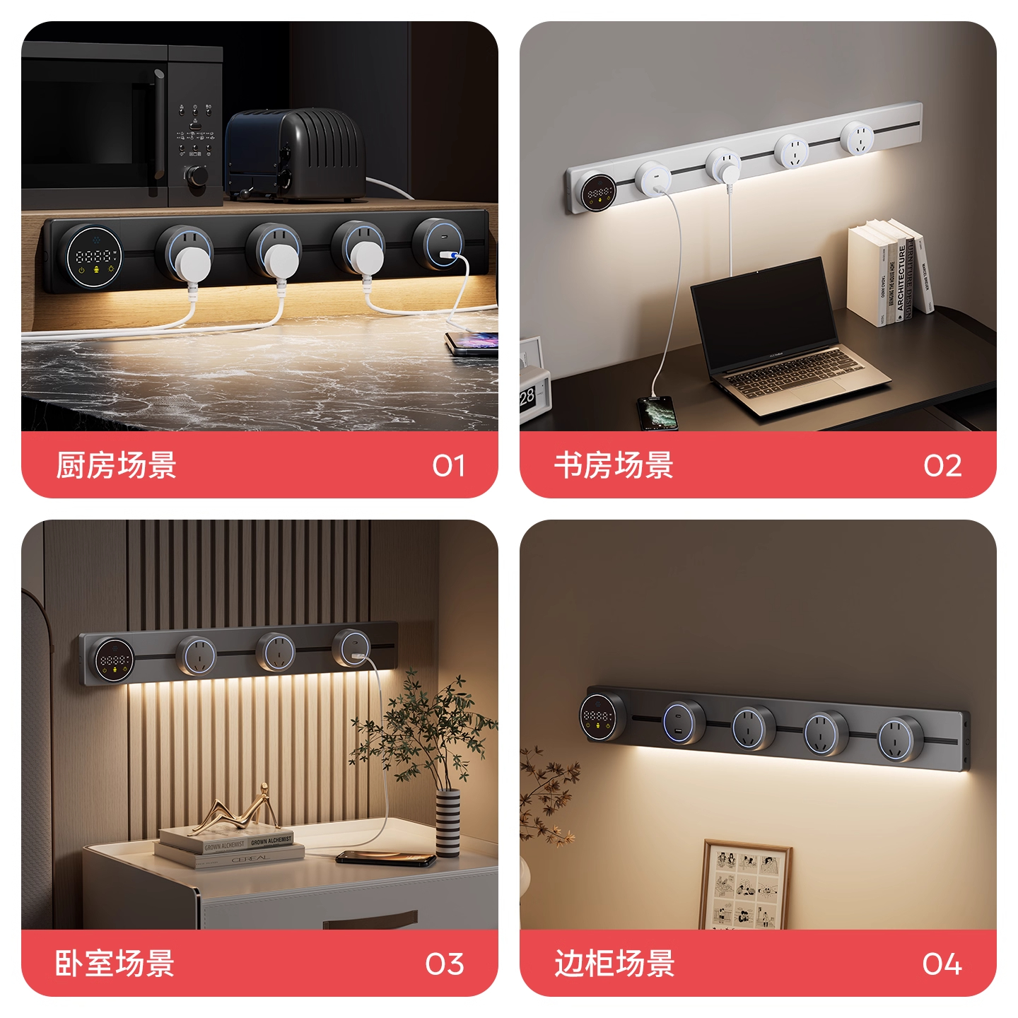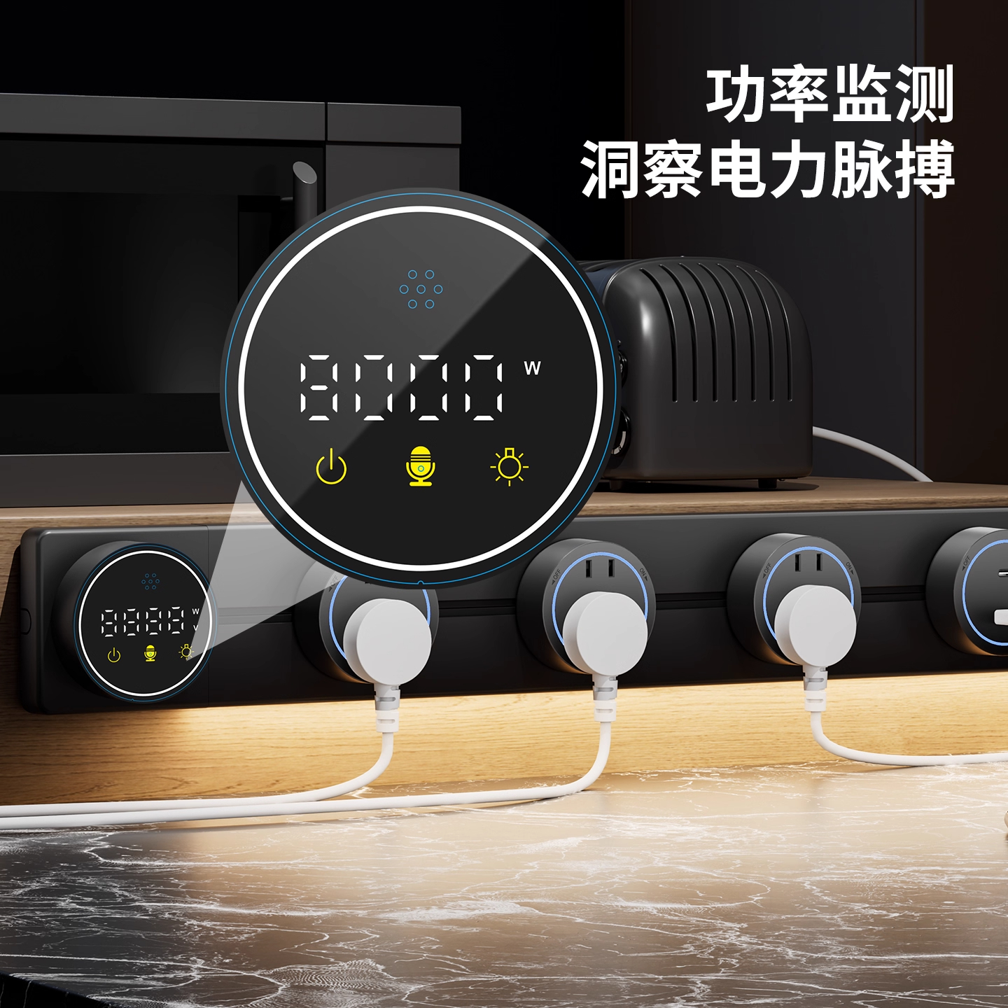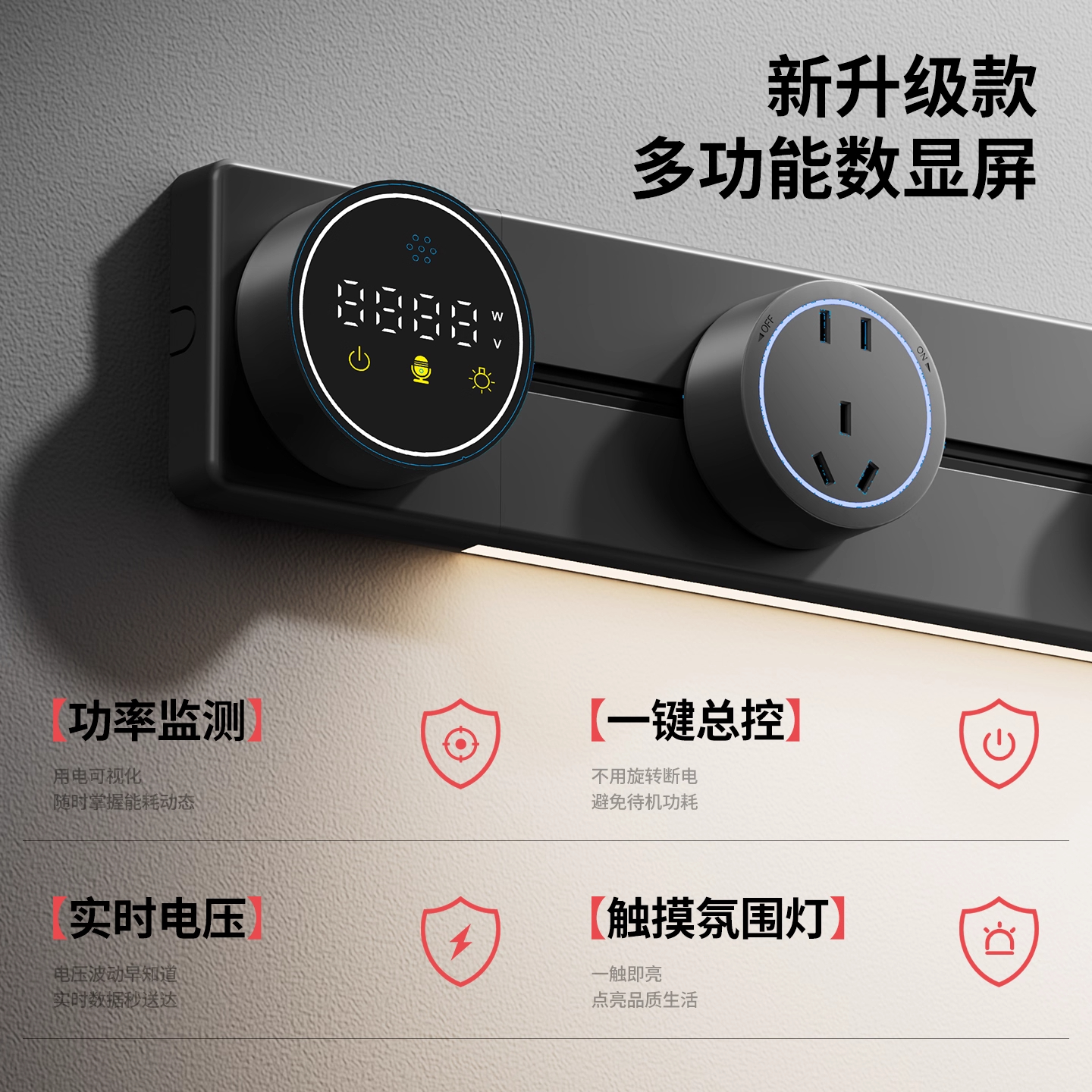 国际电工智能语音屏轨道插座家用厨房餐边柜移动带灯数显滑动插板