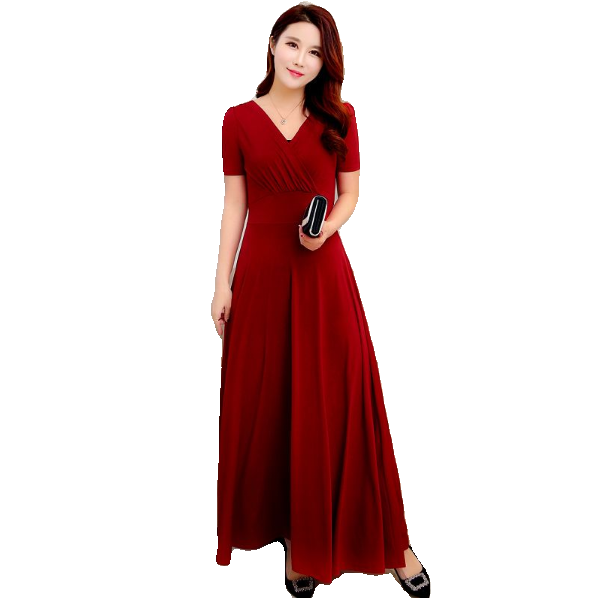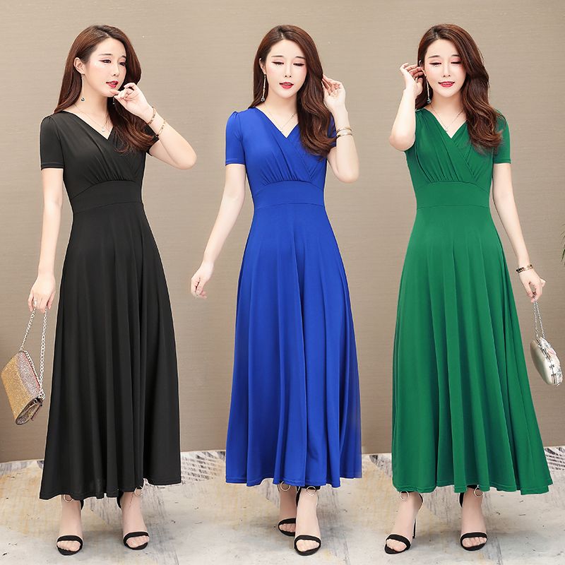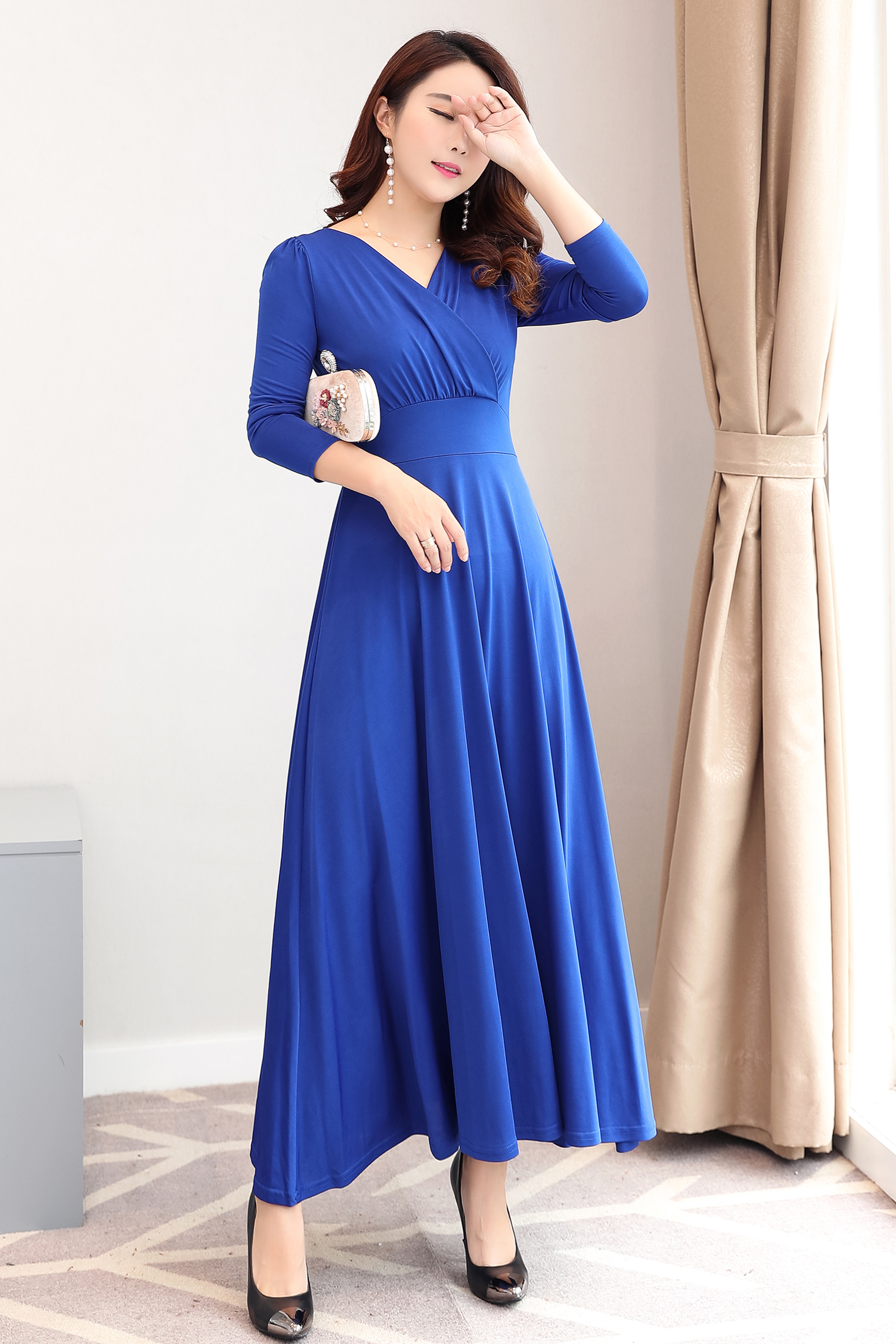 2023秋季新款韩版女装连衣裙V领套头纯色长袖长裙修身显瘦大摆裙