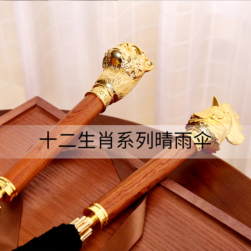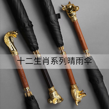 刻字十二生肖雨伞鼠牛虎龙蛇马羊猴鸡狗动物头长柄伞复古抗风超大