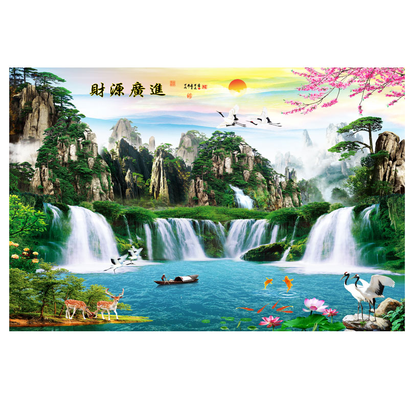 客厅沙发背景墙山水画财源广进大自然风水装饰画办公室海报贴纸画