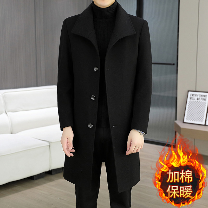 毛呢大衣男中长款外套秋冬季加厚大翻领休闲痞帅气呢子风衣个性潮
