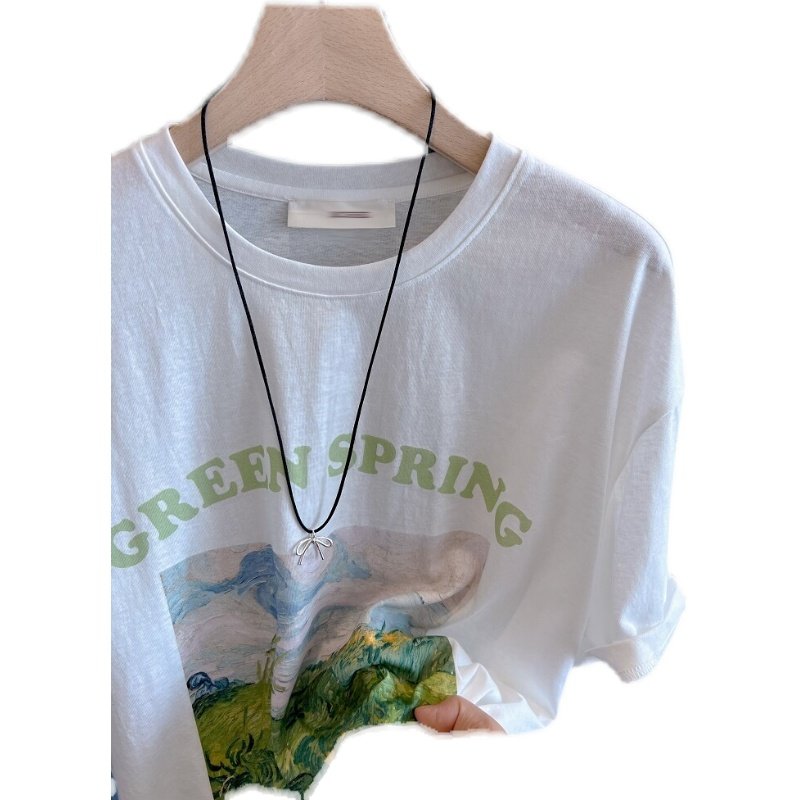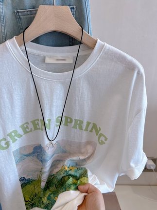 清新文艺油画风~韩国冰凉爽滑雪花棉减龄显瘦纸片人T恤女夏季上衣