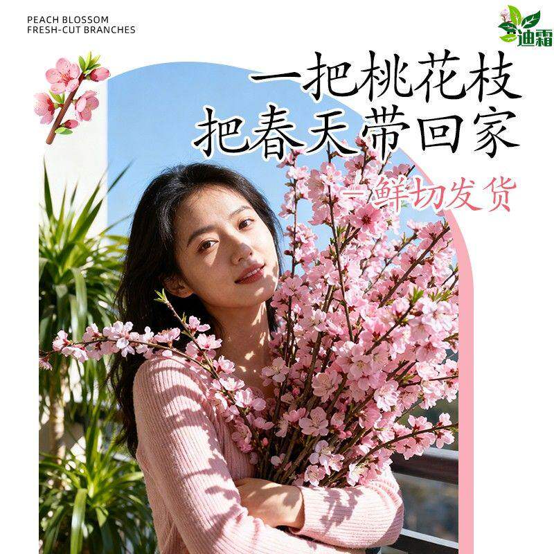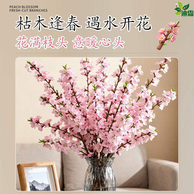 桃花鲜枝干枝水培鲜切带花苞红梅室内客厅水养绿植花卉办公室盆栽