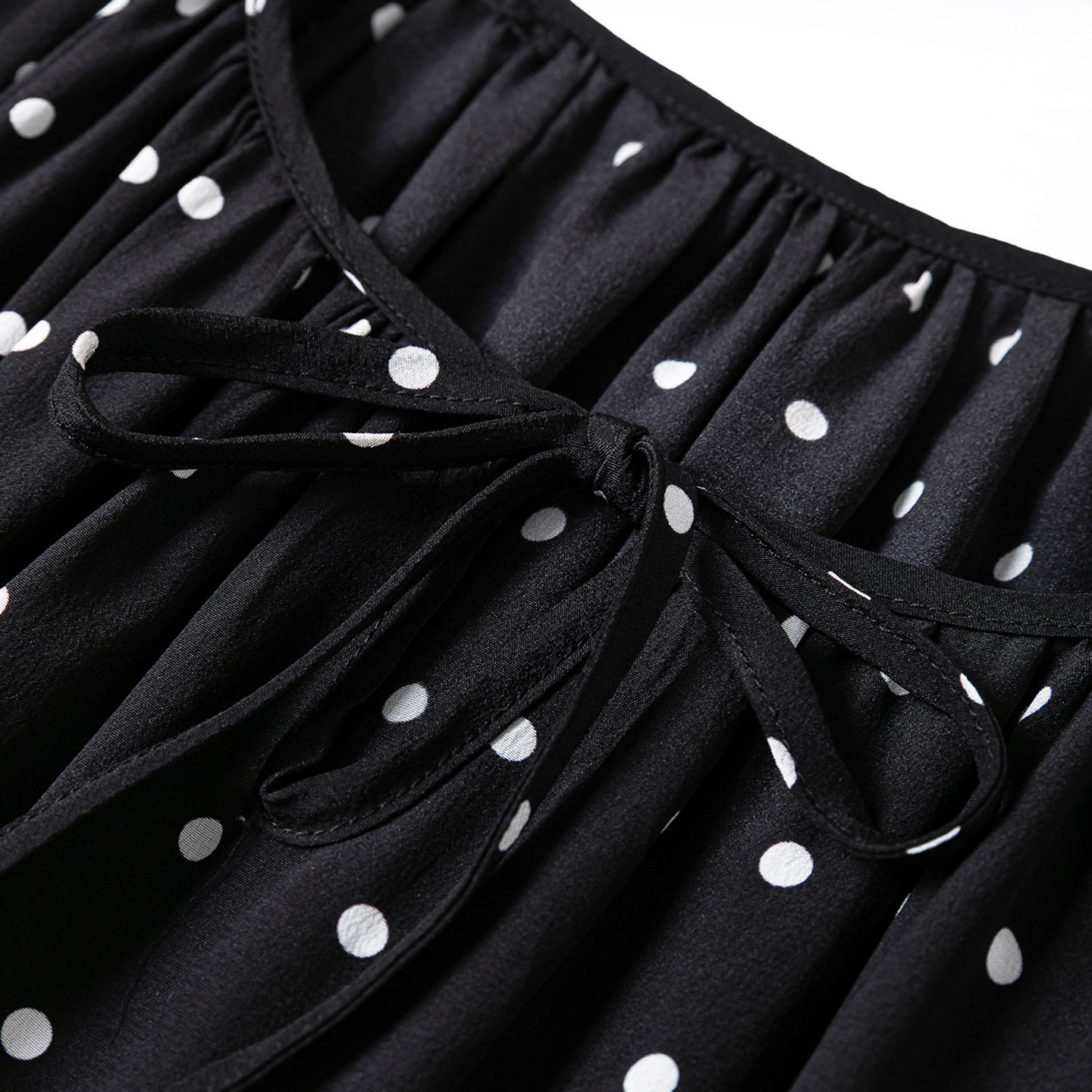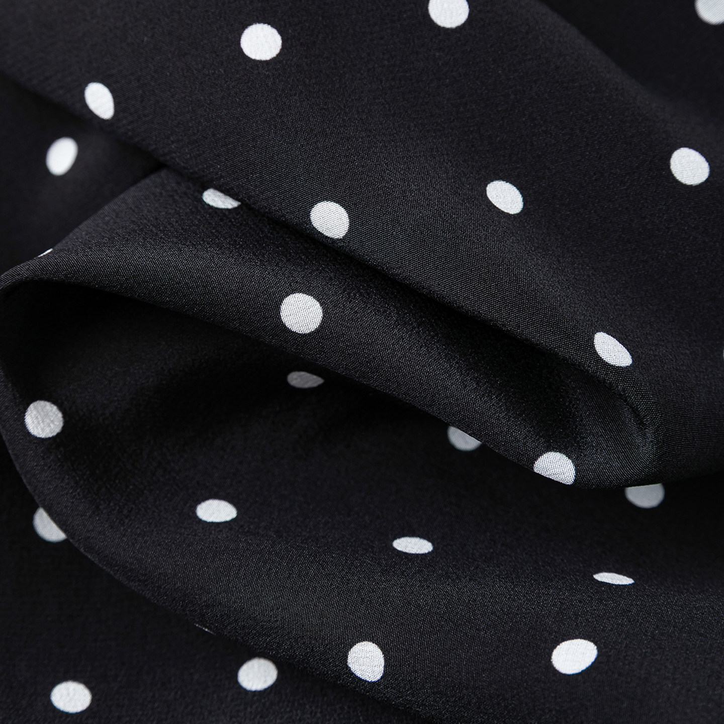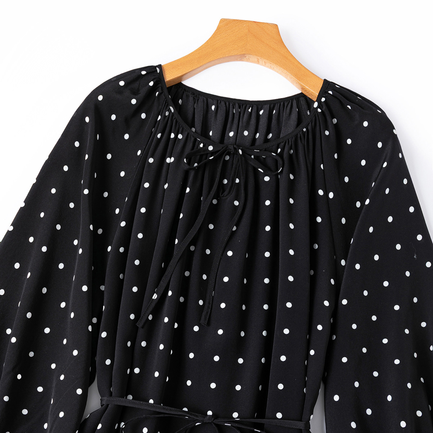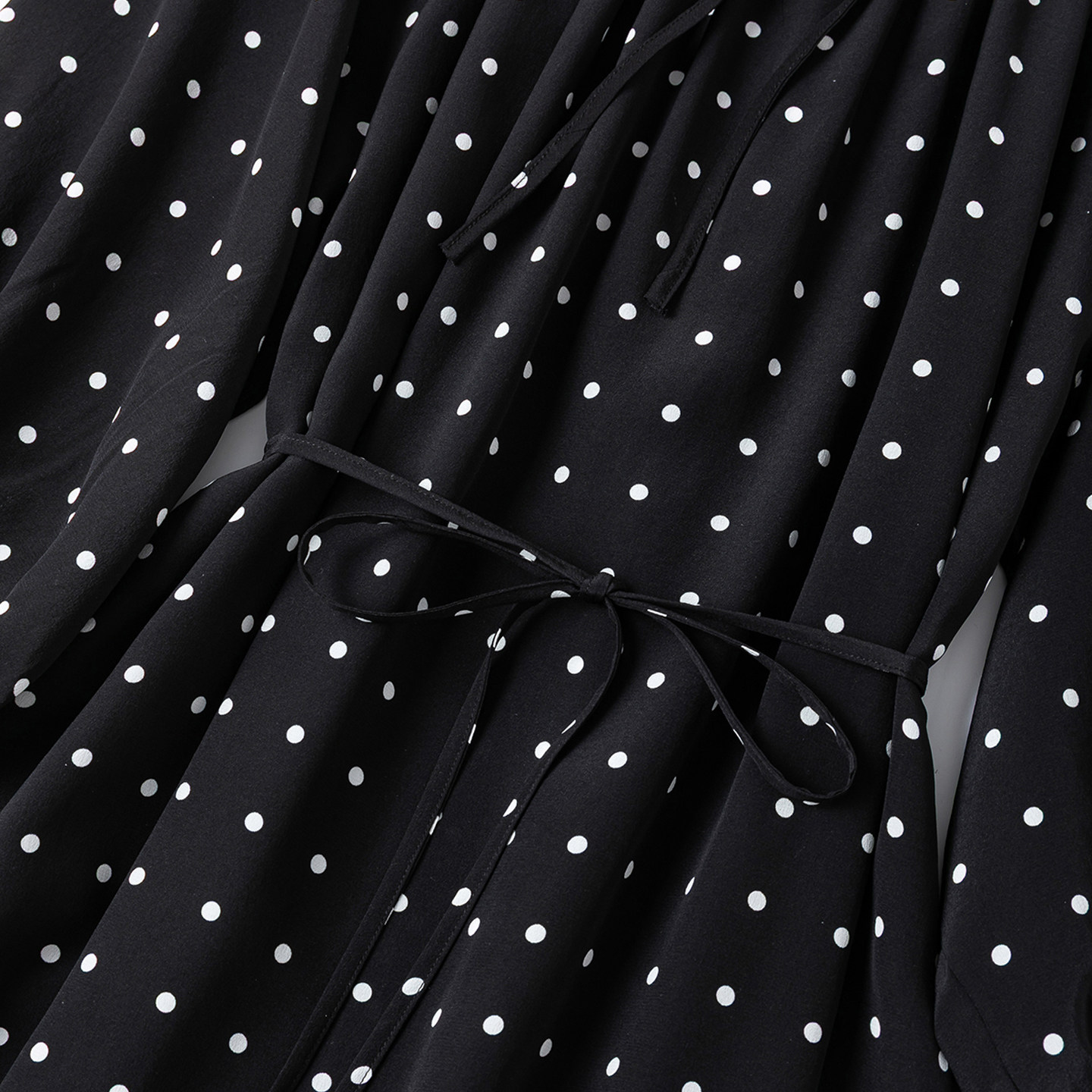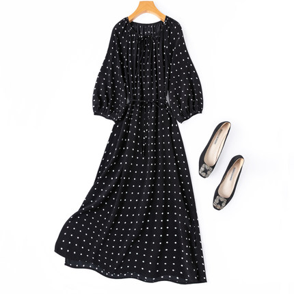 裙长1.2米!简约黑白点点好面料真丝圆领八分灯笼袖开叉连衣裙新