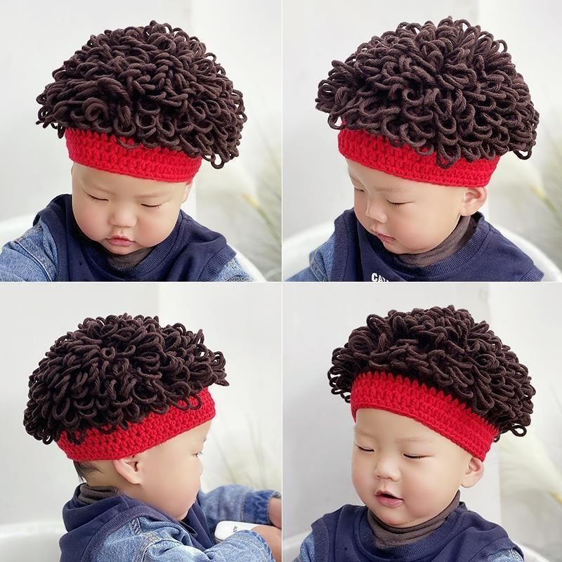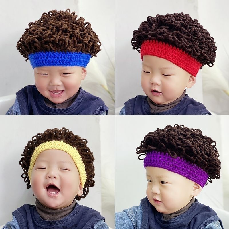 婴儿帽子秋冬宝宝毛线帽儿童假发帽子秋冬季幼儿男童冬天可爱超萌