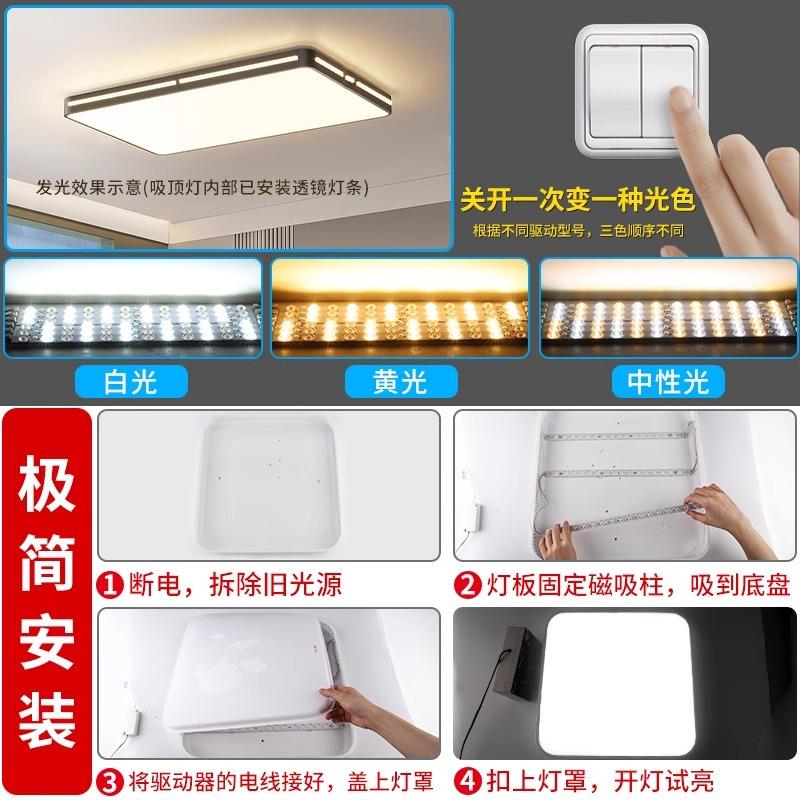 LED吸顶灯灯芯替换改造灯条灯板长条方形客厅灯管灯带透镜光源